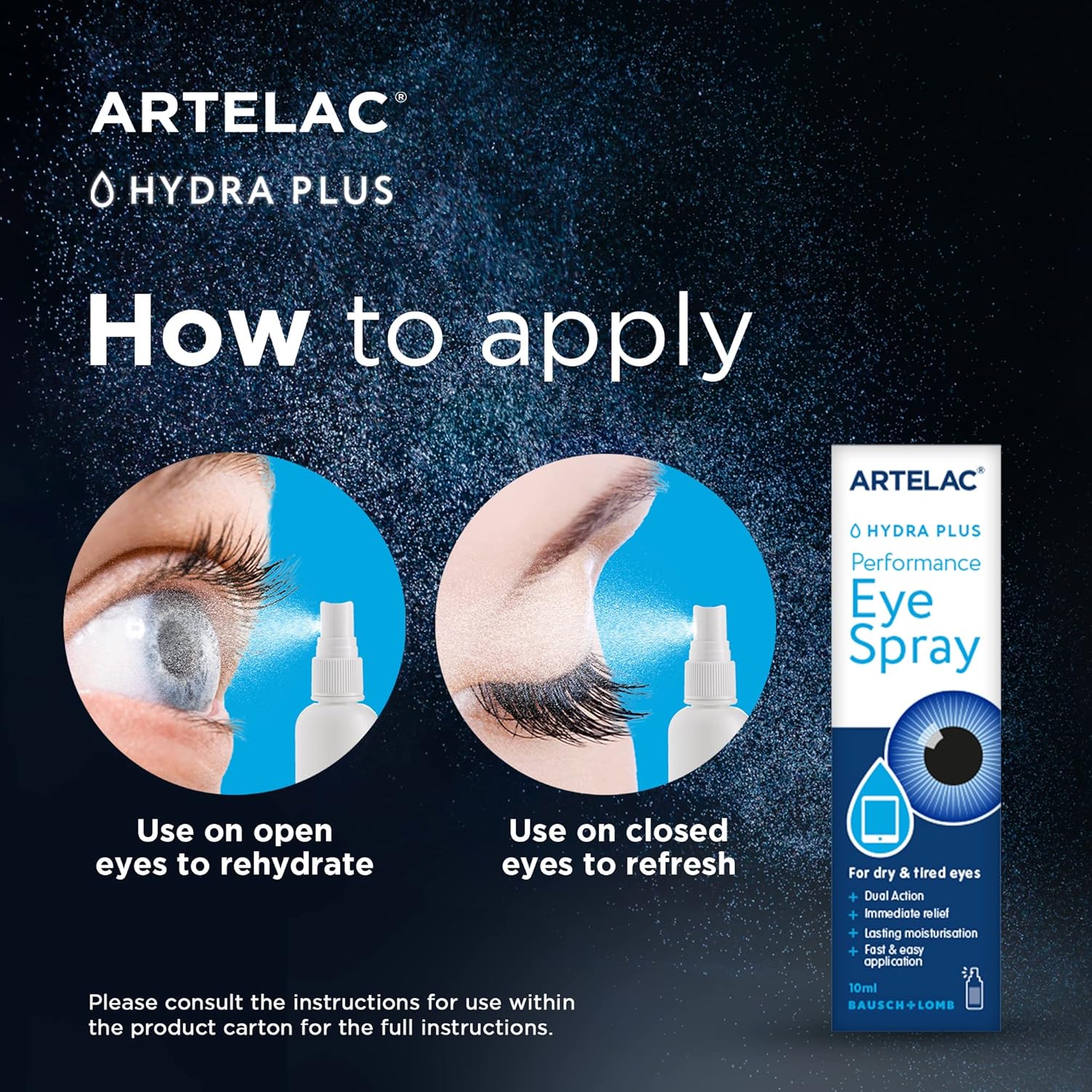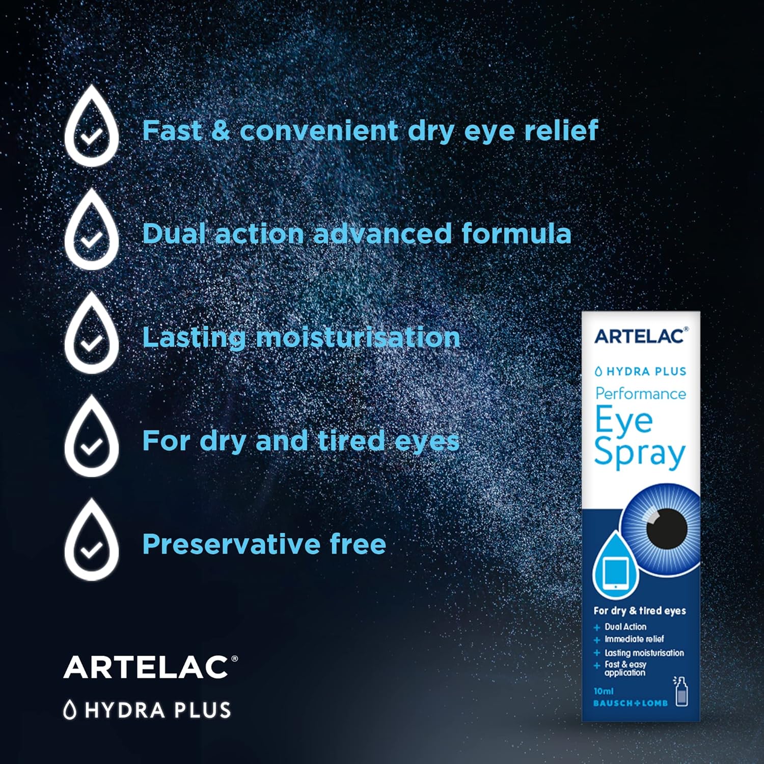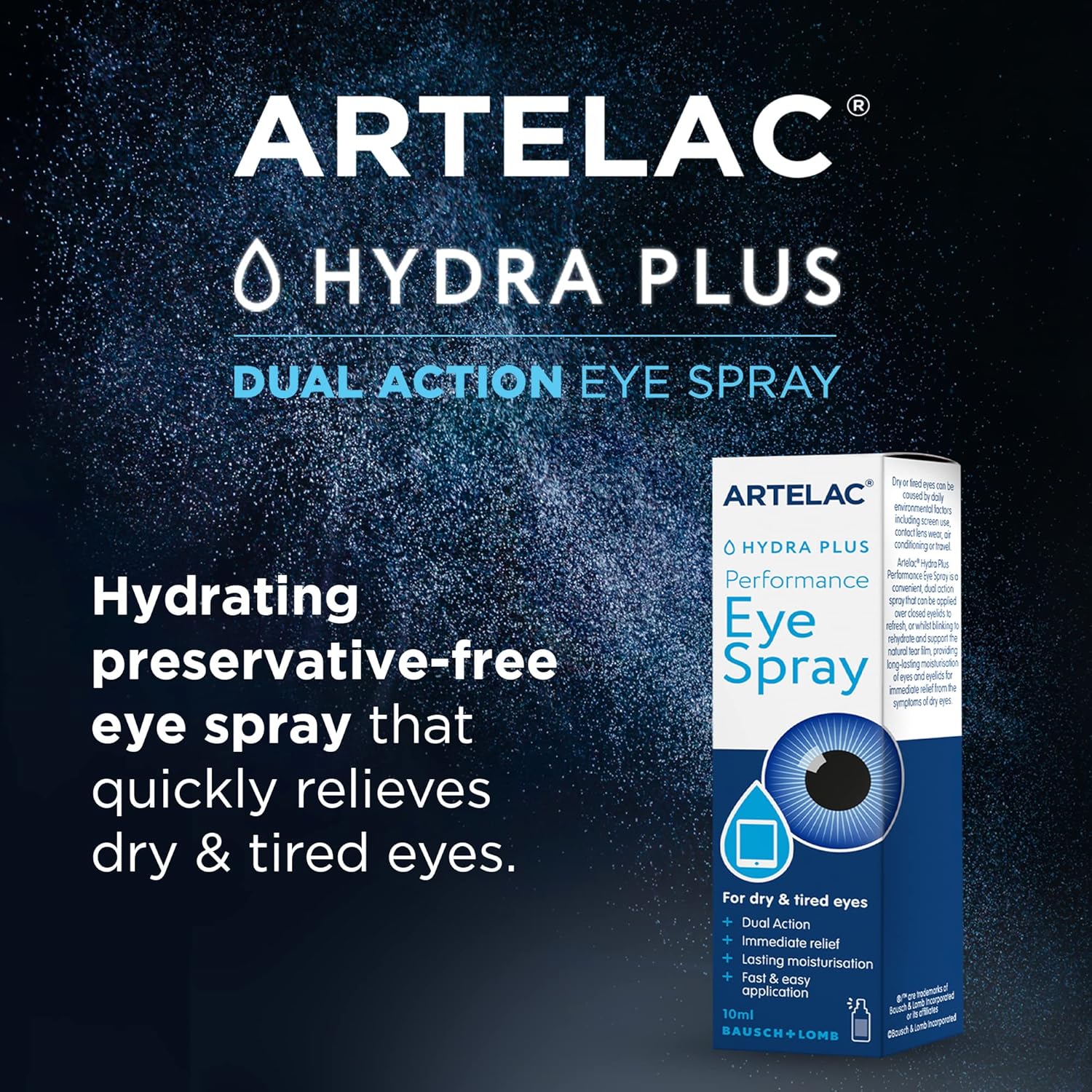 Artelac Dry Eye Spray, Hydra Plus Performance, Dry Eyes Treatment, Immediate Relief Eye Spray For Tired Eyes, Preservative Free Mist, Allergy Relief, Works With Blepharitis Treatment, 10Ml