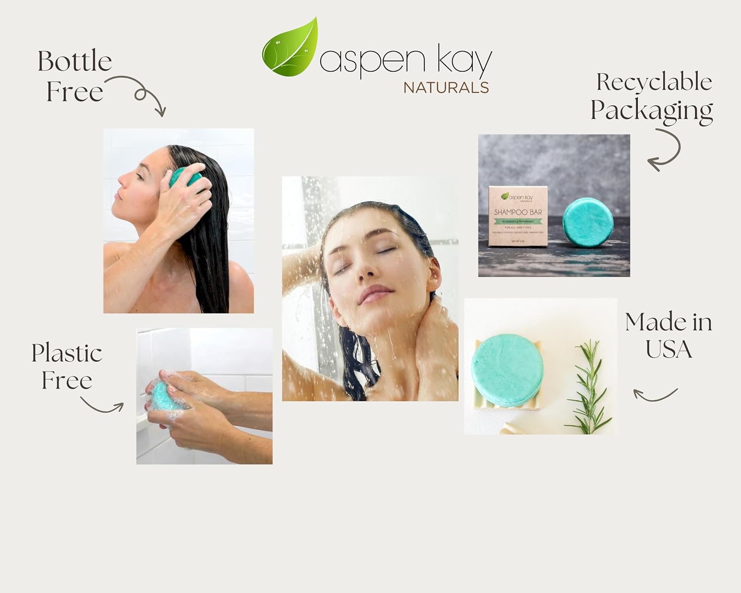 About this item LETS MAKE EVERYDAY A GOOD HAIR DAY; Cleans without stripping hair and scalp of protective oils. Sulfate free, silicone free and paraben free. Contains no harsh detergents and no transition period required. Soap-Free shampoo, made with organic argan oil and scented with sweet orange & lemongrass essential oils THE PERFECT TRAVEL SHAMPOO; An eco friendly shampoo for men and women. Perfect for traveling, camping, washing up after the gym or a trip to the beach MADE WITH ORGANIC HERBS TO RESTORE AND STRENGTHEN HAIR; Our Bar Shampoo includes Organic Nettle, Organic Hibiscus, Organic Horsetail, Organic Chamomile, Organic Calendula and Organic Turmeric. These hair loving herbs are hailed for helping to repair damaged hair, stimulate hair growth, soothing to the scalp and restore the natural luster to the hair. The perfect organic hair care for dry hair, oily hair, and thin hair MADE IN THE USA; All Aspen Kay Naturals products are made with a whole lot of care & love in the USA. Each of our shampoo and conditioner bars are hand crafted, packaged and labeled by a real person. Nothing is mass produced EQUIVALENT TO 3 BOTTLES OF LIQUID SHAMPOO; Each of our shampoo bars are equivalent to three, six ounce bottles of liquid shampoo › See more product details,LETS MAKE EVERYDAY A GOOD HAIR DAY; Cleans without stripping hair and scalp of protective oils. Sulfate free, silicone free and paraben free. Contains no harsh detergents and no transition period required. Soap-Free shampoo, made with organic argan oil and scented with sweet orange & lemongrass essential oils,THE PERFECT TRAVEL SHAMPOO; An eco friendly shampoo for men and women. Perfect for traveling, camping, washing up after the gym or a trip to the beach,MADE WITH ORGANIC HERBS TO RESTORE AND STRENGTHEN HAIR; Our Bar Shampoo includes Organic Nettle, Organic Hibiscus, Organic Horsetail, Organic Chamomile, Organic Calendula and Organic Turmeric. These hair loving herbs are hailed for helping to repair damaged hair, stimulate hair growth, soothing to the scalp and restore the natural luster to the hair. The perfect organic hair care for dry hair, oily hair, and thin hair,MADE IN THE USA; All Aspen Kay Naturals products are made with a whole lot of care & love in the USA. Each of our shampoo and conditioner bars are hand crafted, packaged and labeled by a real person. Nothing is mass produced,EQUIVALENT TO 3 BOTTLES OF LIQUID SHAMPOO; Each of our shampoo bars are equivalent to three, six ounce bottles of liquid shampoo