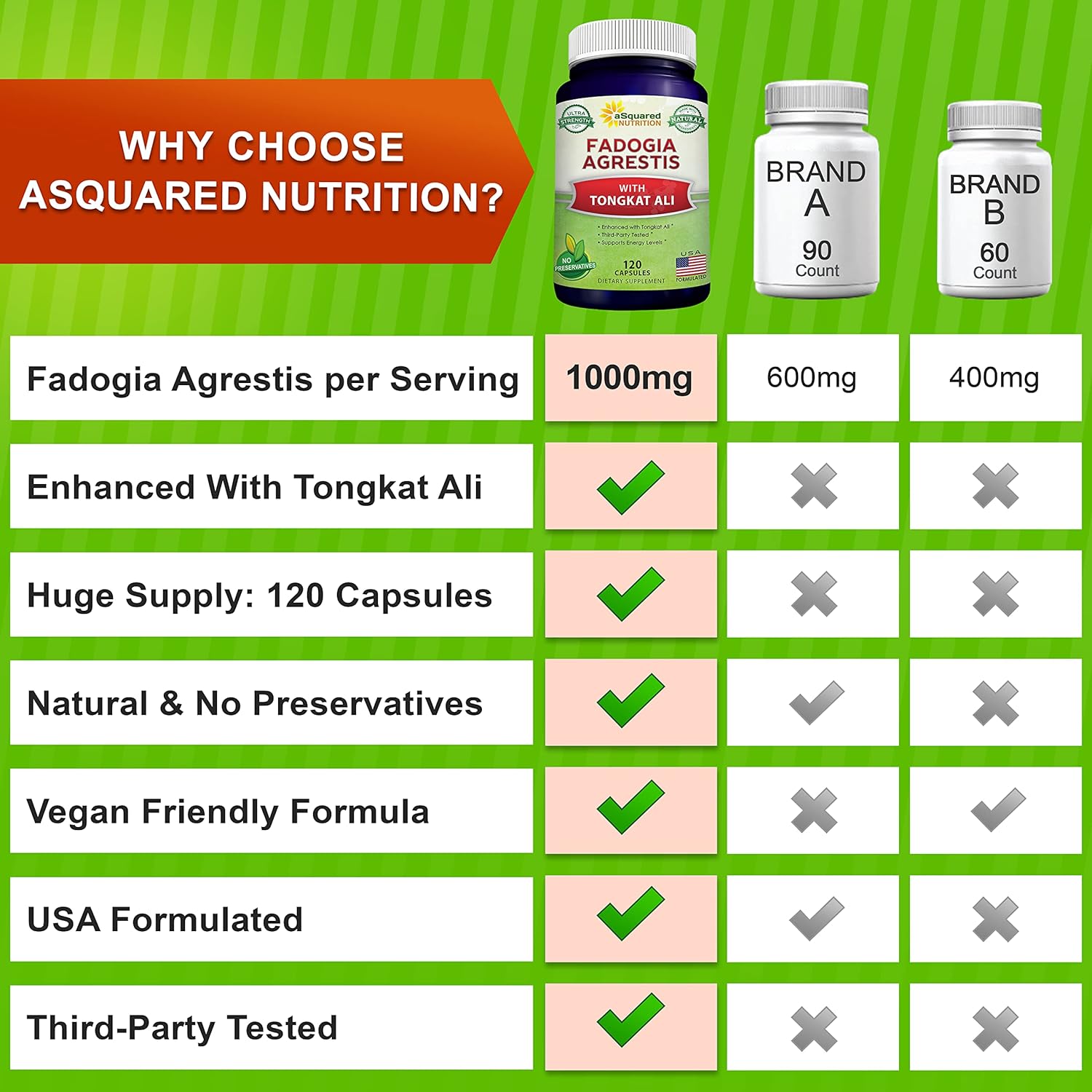 aSquared Nutrition Fadogia Agrestis 1000mg & Tongkat Ali 400mg - 120 Capsules - Fadogia Agrestis Extract Supplement and Powder Complex Pills