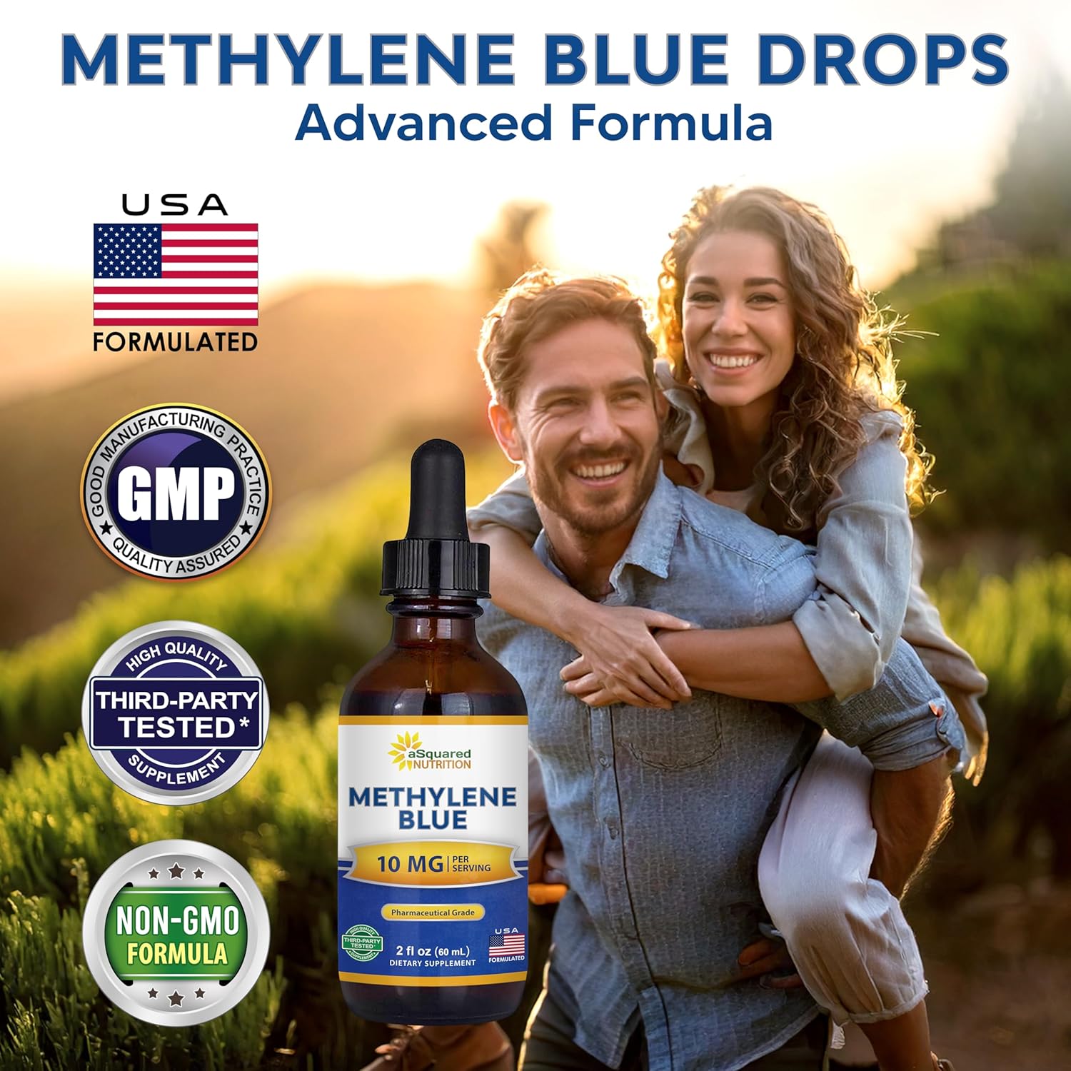 Asquared Nutrition Methylene Blue Drops - 1% Pharmaceutical Grade Liquid Supplement For Humans - 10Mg Usp Grade W/Vitamin C - No Formaldehyde - Brain & Energy Alternative To Capsules (2 Fl Oz)