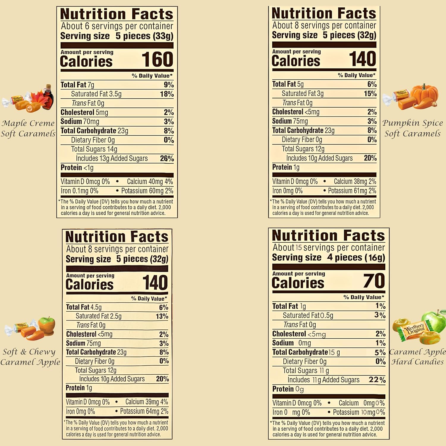 Delightful Flavor Variety: 4 Specialty Assorted Flavors Pumpkin Spice Soft & Creamy Caramel, Caramel Apple Soft Caramels, Creamy And Smooth Caramel Apple Hard Candies, And Maple Creme Soft Caramels