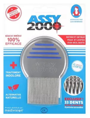 Assy 2000, Removes The Louses And Destroys The Nit. The Brand Assy 2000 Proposes You A Natural Alternative To Anti-Louses Products : The Anti-Louses Comb. Through Its Teeth Equiped Of A Unique And Grooved Spiral, The Nits Are Ripped At Several Places And Destroyed. The Anti-Louse Comb Assy 2000 Is Equiped Of Rounded Tips That Prevent To Irritate And Damage The Scalp And The Hair