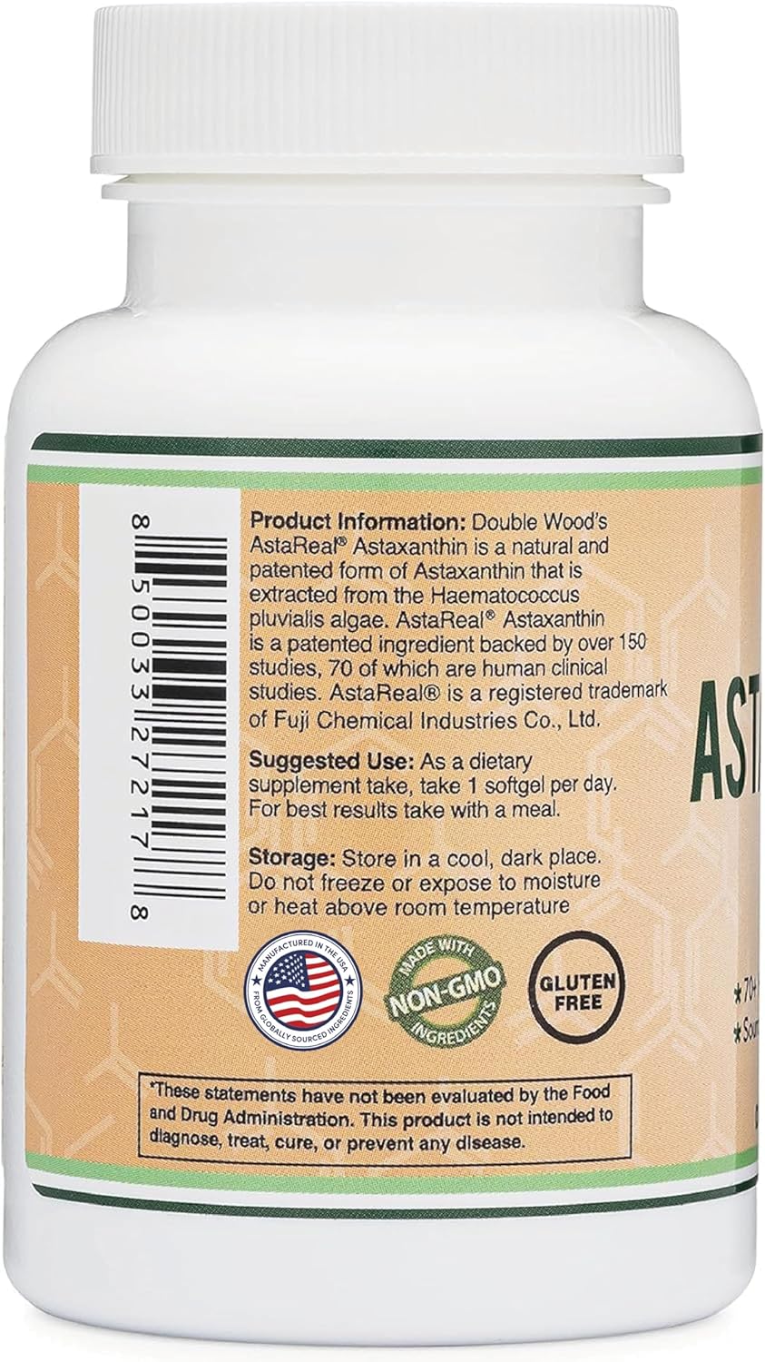 Astaxanthin 12Mg Max Strength (Astareal: Natural Patented Astaxanthin With 70+ Human Clinical Trials - World'S Most Studied Brand) Grown, Harvested, And Made In The Usa (Astaxantina) By Double Wood