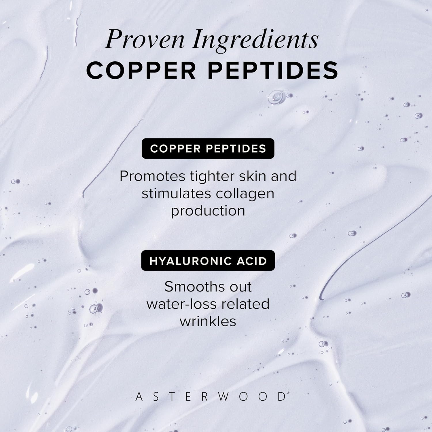 About this item Revitalize Your Skin: Asterwood's Copper Peptides Serum with Hyaluronic Acid combines the rejuvenating power of copper peptides and the hydrating benefits of hyaluronic acid to deliver visible results. Advanced Skin Renewal: Copper Tripeptide-1 GHK-Cu is a powerful anti-aging ingredient known for promoting collagen and elastin production, which helps to improve skin firmness and reduce the appearance of fine lines and wrinkles. Intense Hydration: Hyaluronic acid, an ingredient known for its excellent hydration properties, helps reduce the appearance of fine lines and wrinkles and maintains the skin's moisture barrier, providing long-lasting moisture and plumpness. Lightweight Formula: Absorbs quickly and easily without leaving any residue, making it perfect for daily use and suitable for all skin types. Gentle and Vegan: Free from irritants, no sulfates, parabens, or phthalates, ensuring a gentle application that won’t cause irritation or dryness. Cruelty-free. See more product details,Revitalize Your Skin: Asterwood's Copper Peptides Serum with Hyaluronic Acid combines the rejuvenating power of copper peptides and the hydrating benefits of hyaluronic acid to deliver visible results,Advanced Skin Renewal: Copper Tripeptide-1 GHK-Cu is a powerful anti-aging ingredient known for promoting collagen and elastin production, which helps to improve skin firmness and reduce the appearance of fine lines and wrinkles,Intense Hydration: Hyaluronic acid, an ingredient known for its excellent hydration properties, helps reduce the appearance of fine lines and wrinkles and maintains the skin's moisture barrier, providing long-lasting moisture and plumpness,Lightweight Formula: Absorbs quickly and easily without leaving any residue, making it perfect for daily use and suitable for all skin types,Gentle and Vegan: Free from irritants, no sulfates, parabens, or phthalates, ensuring a gentle application that won’t cause irritation or dryness. Cruelty-free