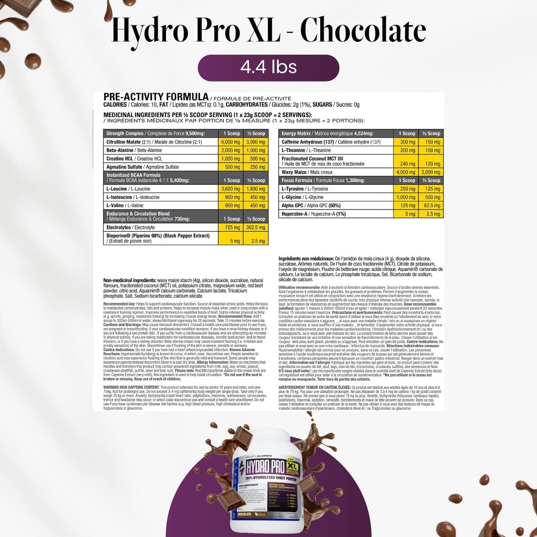 DESCRIPTION : Athletic Alliance Hydro PRO XL 100% Hydrolyzed, Low Carb Whey Isolate Protein Powder, Easy Digesting & Fast Absorbing, 4.4 lbs (Chocolate)