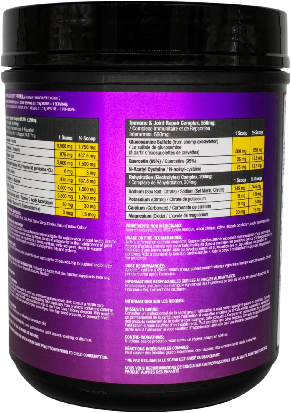 About this item Our BCAA+ blend contains L-Leucine, L-Isoleucine, and L-Valine in a 4:1:1 ratio. These essential amino acids play a critical role in muscle protein synthesis. They also help to reduce muscle breakdown and promote muscle growth and repair. In addition to our BCAA blend, we've included L-Glycine, Vitamin B6, L-Glutamine, Taurine, Vitamin C, and Vitamin B12. These ingredients work together to support optimal muscle recovery, reduce muscle soreness and inflammation, and boost energy levels. Our Immune and Joint Repair Complex is packed with Glucosamine Sulfate, Quercetin, and N-Acetyl Cysteine. These ingredients work together to support joint health, reduce inflammation, and boost immune function, making our Regen-X a must-have for anyone looking to stay active and healthy. To top it off, Regen-X also contains an Electrolyte Complex that includes sodium, potassium, calcium, and magnesium. These essential electrolytes help to regulate fluid balance in the body and maintain proper muscle function, making them particularly important for athletes and anyone engaging in intense exercise. With regular use, you can expect to see improved muscle growth and recovery, reduced muscle soreness and inflammation, and improved immune and joint health. Why settle for an ordinary BCAA product when your workouts and lifestyle deserve so much more See more product details,Our BCAA+ blend contains L-Leucine, L-Isoleucine, and L-Valine in a 4:1:1 ratio. These essential amino acids play a critical role in muscle protein synthesis. They also help to reduce muscle breakdown and promote muscle growth and repair,In addition to our BCAA blend, we've included L-Glycine, Vitamin B6, L-Glutamine, Taurine, Vitamin C, and Vitamin B12. These ingredients work together to support optimal muscle recovery, reduce muscle soreness and inflammation, and boost energy levels,Our Immune and Joint Repair Complex is packed with Glucosamine Sulfate, Quercetin, and N-Acetyl Cysteine. These ingredients work together to support joint health, reduce inflammation, and boost immune function, making our Regen-X a must-have for anyone looking to stay active and healthy,To top it off, Regen-X also contains an Electrolyte Complex that includes sodium, potassium, calcium, and magnesium. These essential electrolytes help to regulate fluid balance in the body and maintain proper muscle function, making them particularly important for athletes and anyone engaging in intense exercise,With regular use, you can expect to see improved muscle growth and recovery, reduced muscle soreness and inflammation, and improved immune and joint health. Why settle for an ordinary BCAA product when your workouts and lifestyle deserve so much more