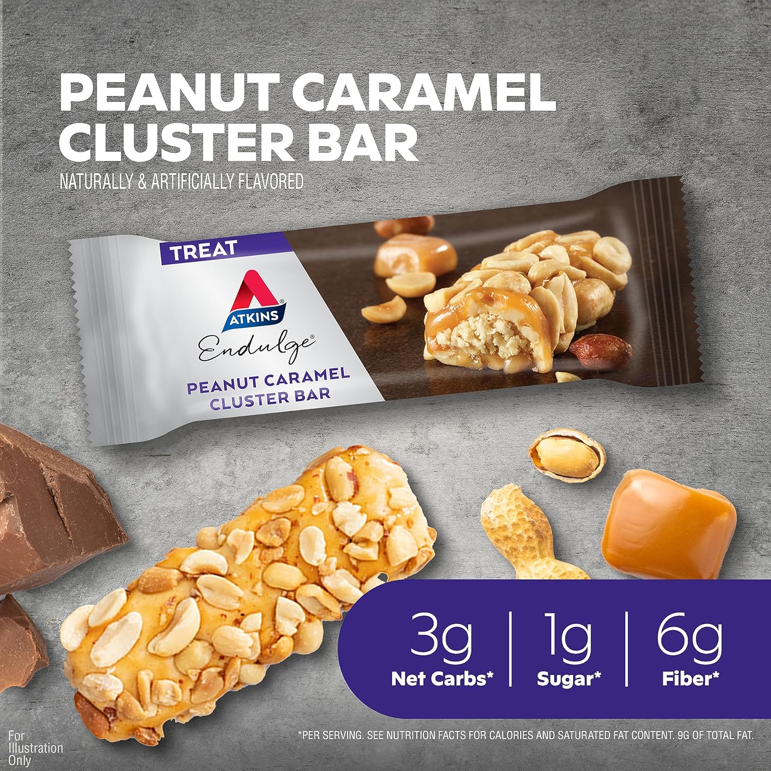 Peanut Caramel Cluster Bar. Let This Atkins Endulge Treat Delight Your Taste Buds While Keeping You True To Your Lifestyle. Includes 1 Pack Of 16 Individually Wrapped 1.2 Oz Bars