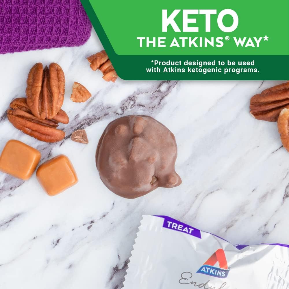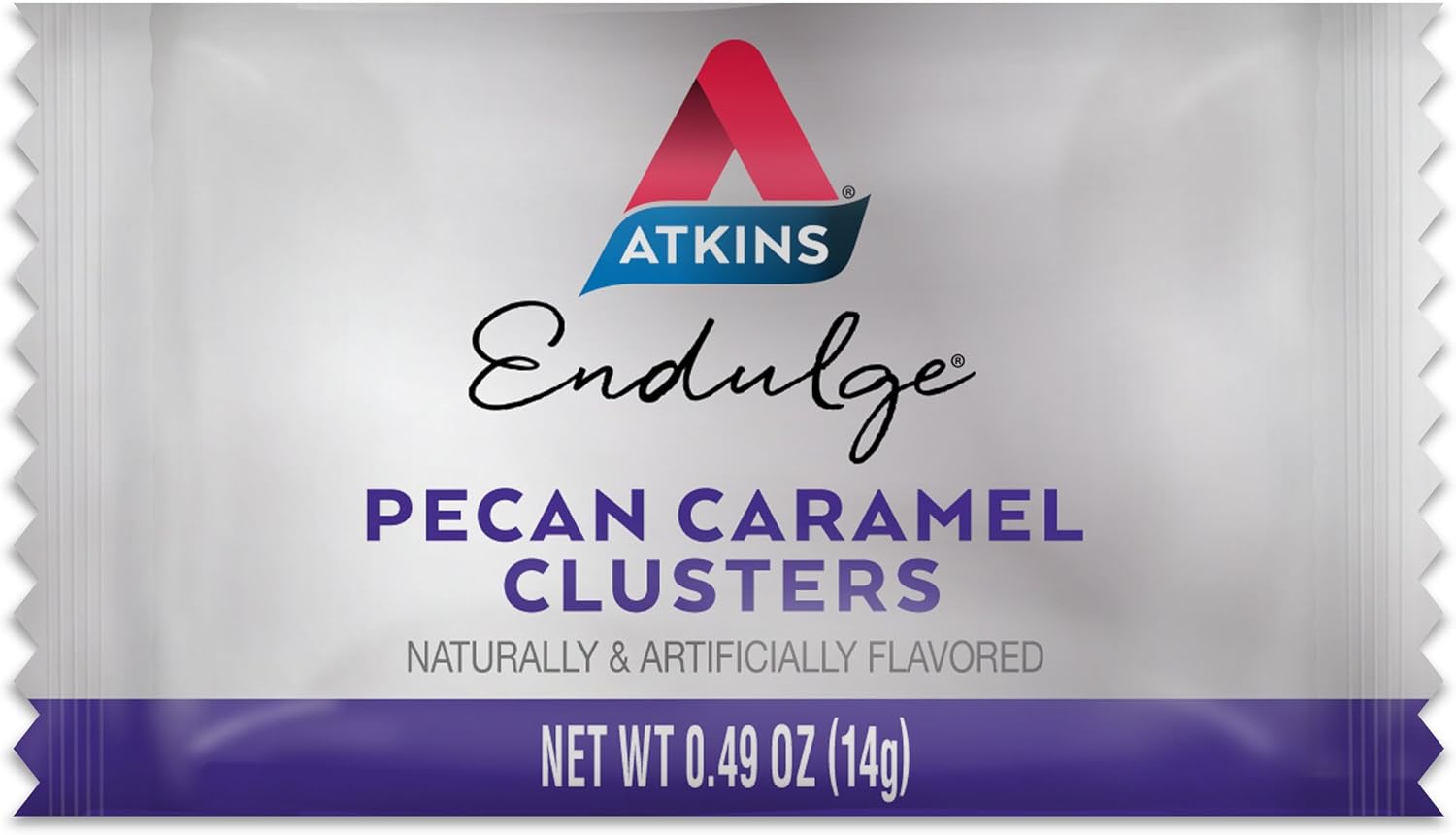 SATISFY YOUR SWEET TOOTH. Atkins Endulge Pecan Caramel Clusters. 2g of net carbs and 2g of sugar per serving*. This is Today’s Atkins
