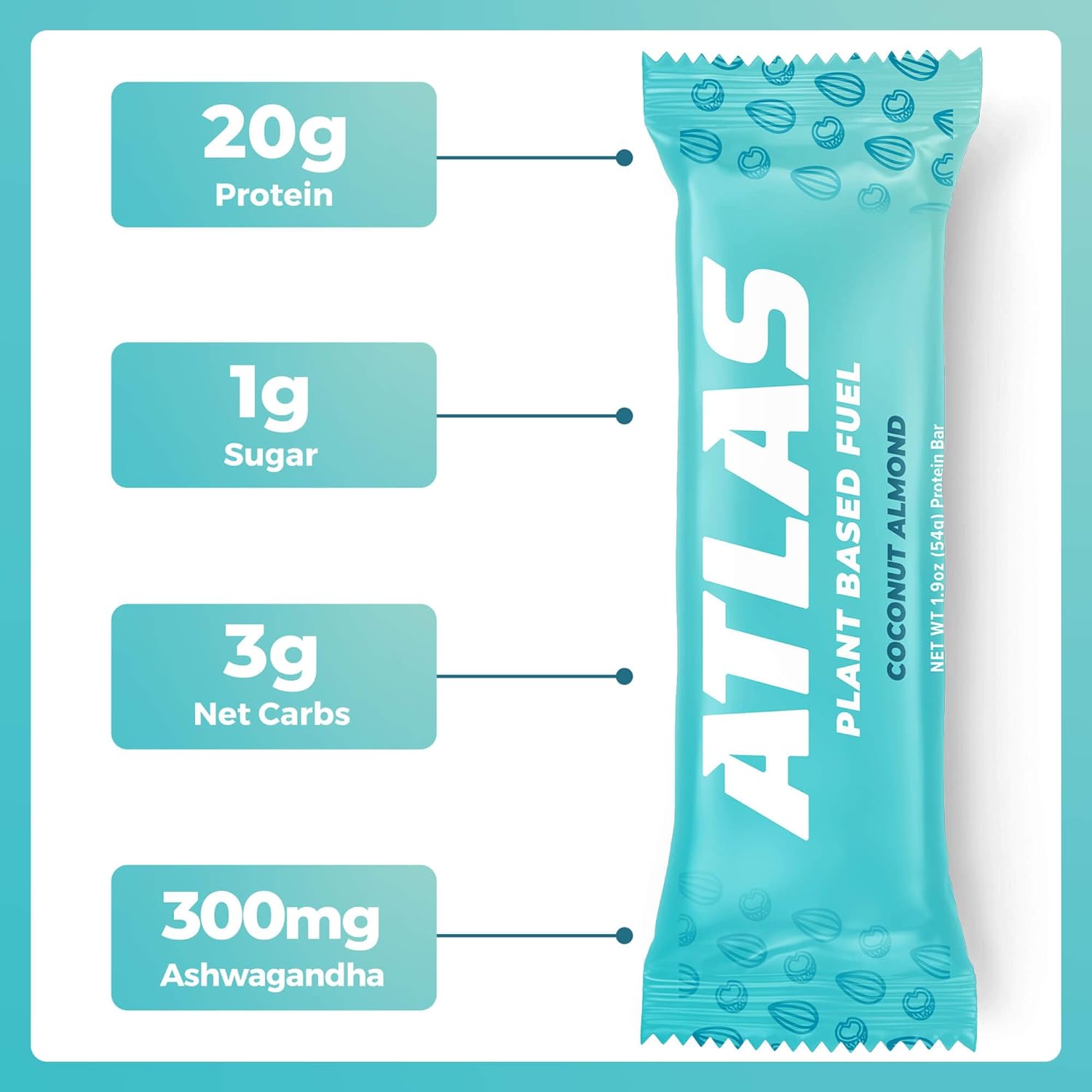 Atlas Protein Bar, 20G Plant Protein, 1G Sugar, Clean Ingredients, Gluten Free Coconut Almond, 12 Count (Pack Of 3))