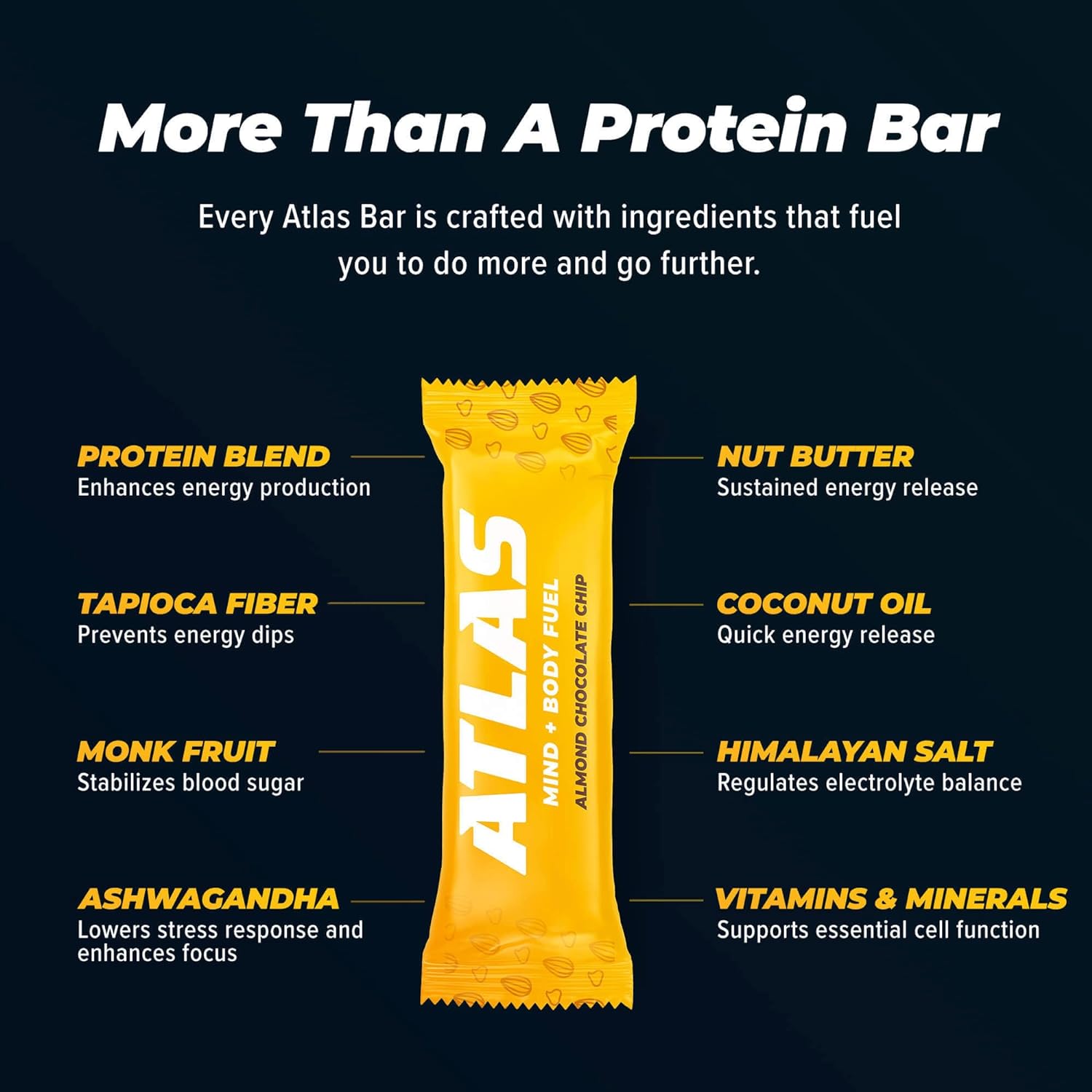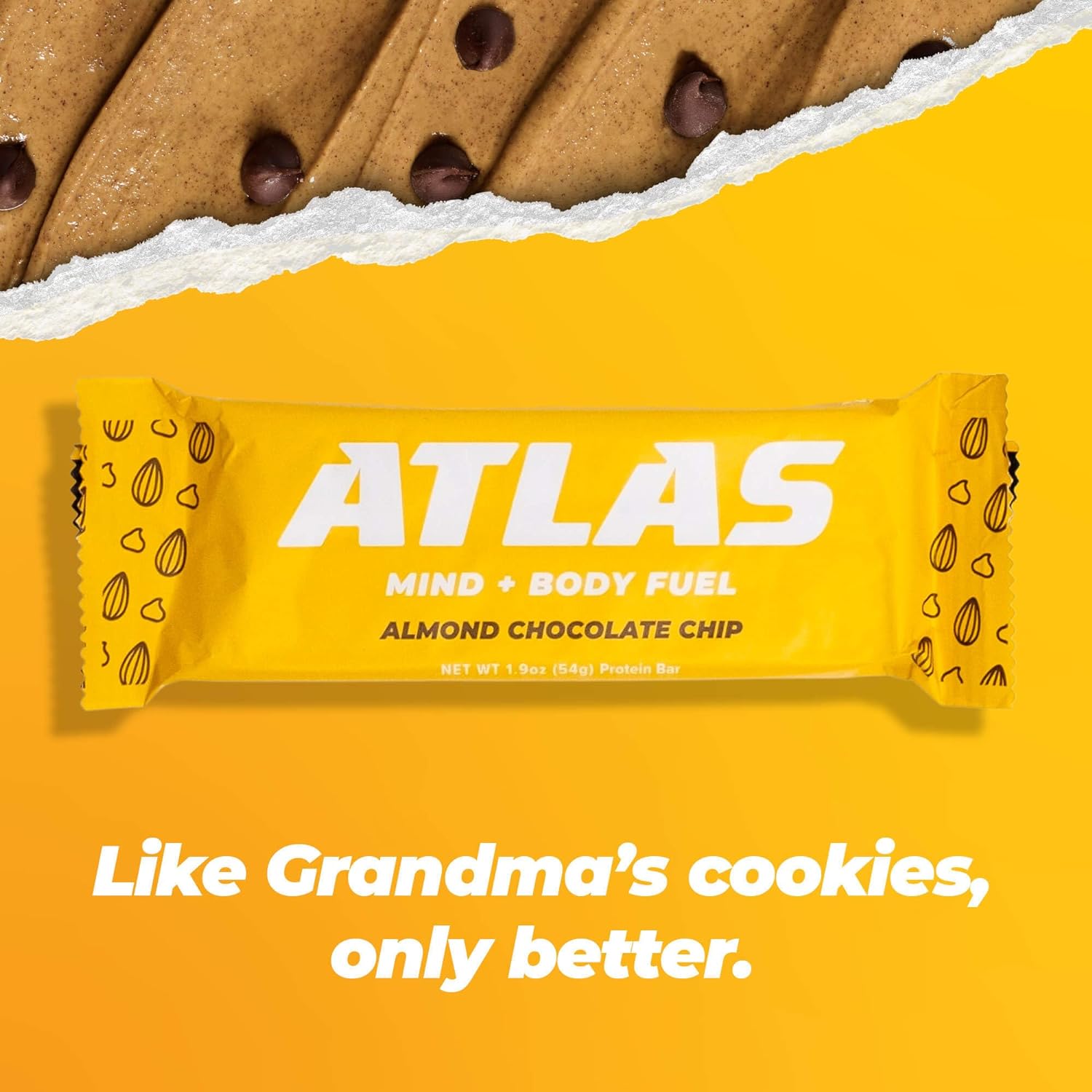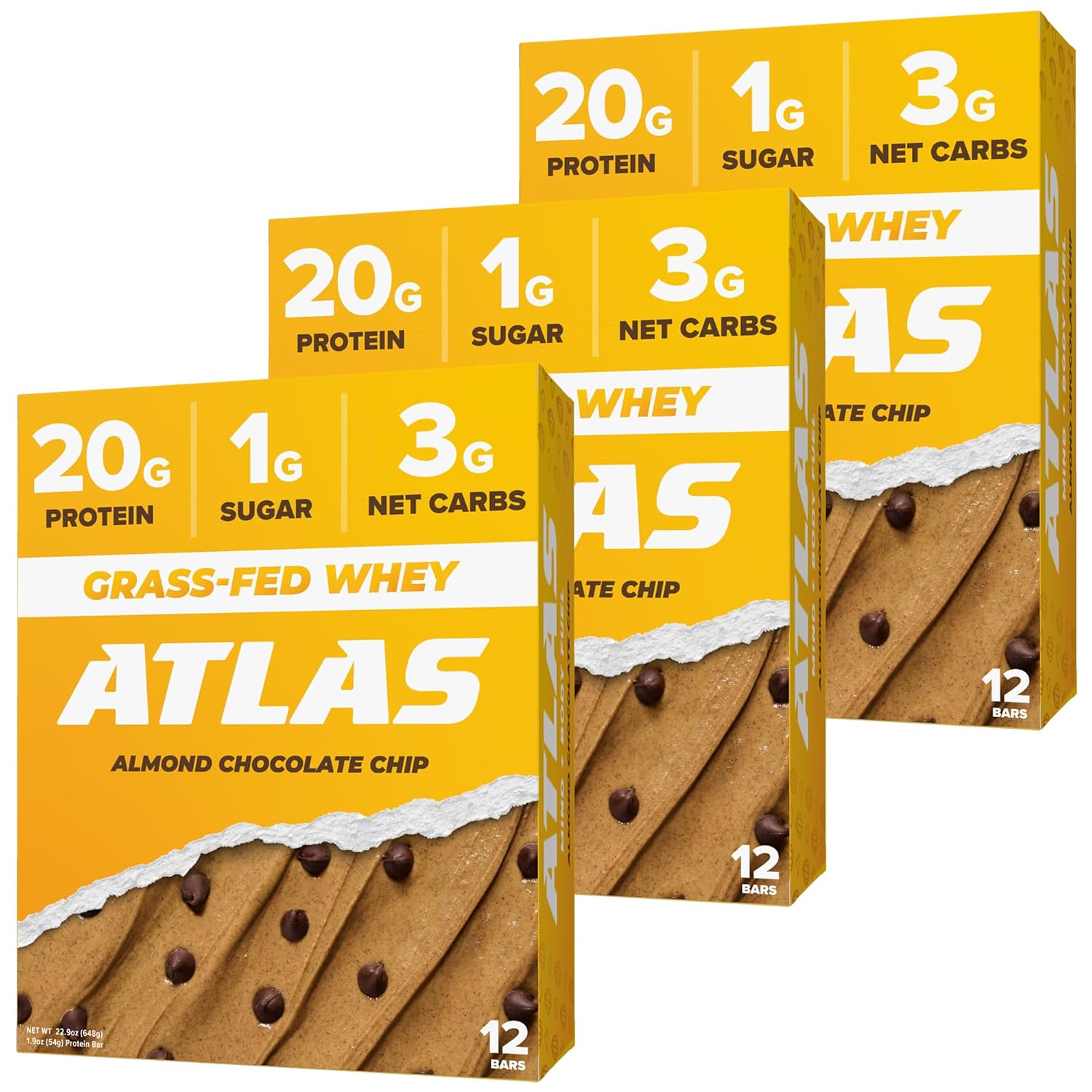 Atlas Protein Bar, 20G Protein, 1G Sugar, Clean Ingredients, Gluten Free (Almond Chocolate Chip, 12 Count (Pack Of 3))