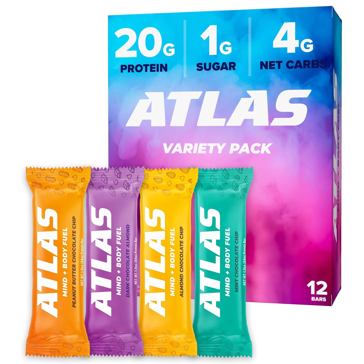 Atlas Protein Bar, 20G Protein, 1G Sugar, Clean Ingredients, Gluten Free (Chocolate Variety, 12 Count (Pack Of 2))