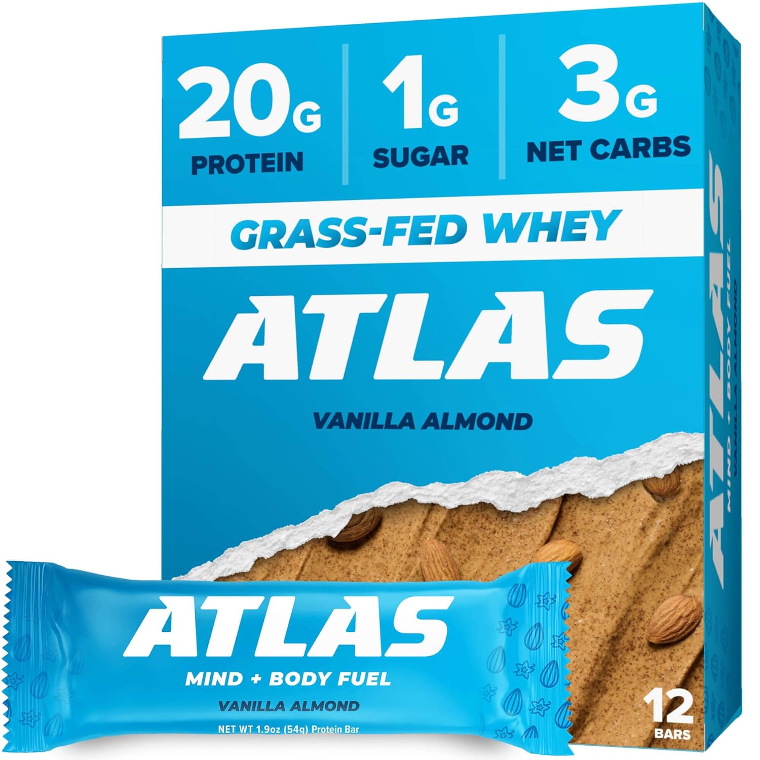 Atlas Protein Bar, 20G Protein, 1G Sugar, Clean Ingredients, Gluten Free, Vanilla Almond (12 Count, Pack Of 1)