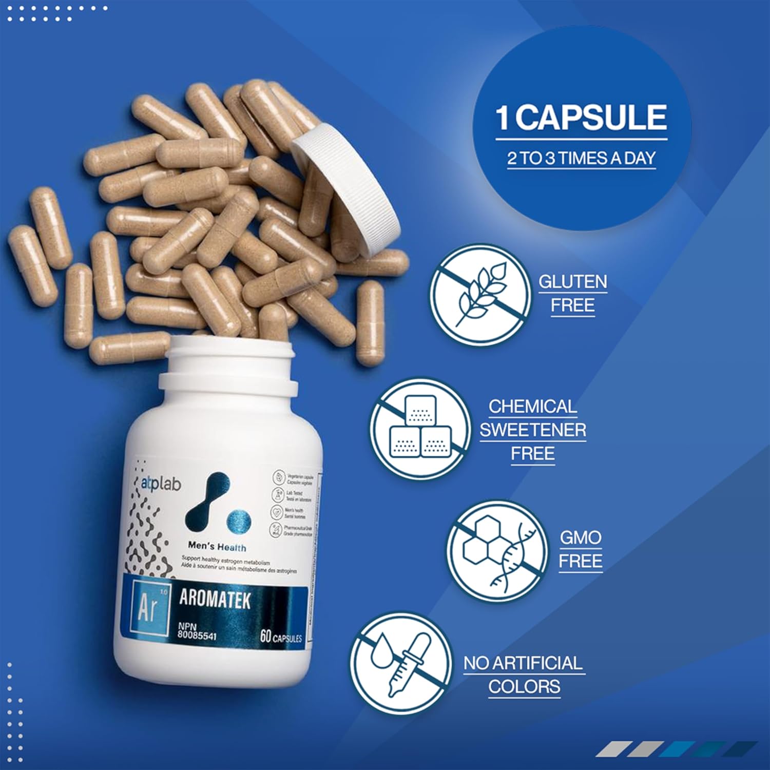 Atp Lab - Aromatek 60 Capsules 30-Day Supply - Men’S Health Formula - Helps To Support Healthy Estrogen Metabolism, Maintain Healthy Skin And Immune Function