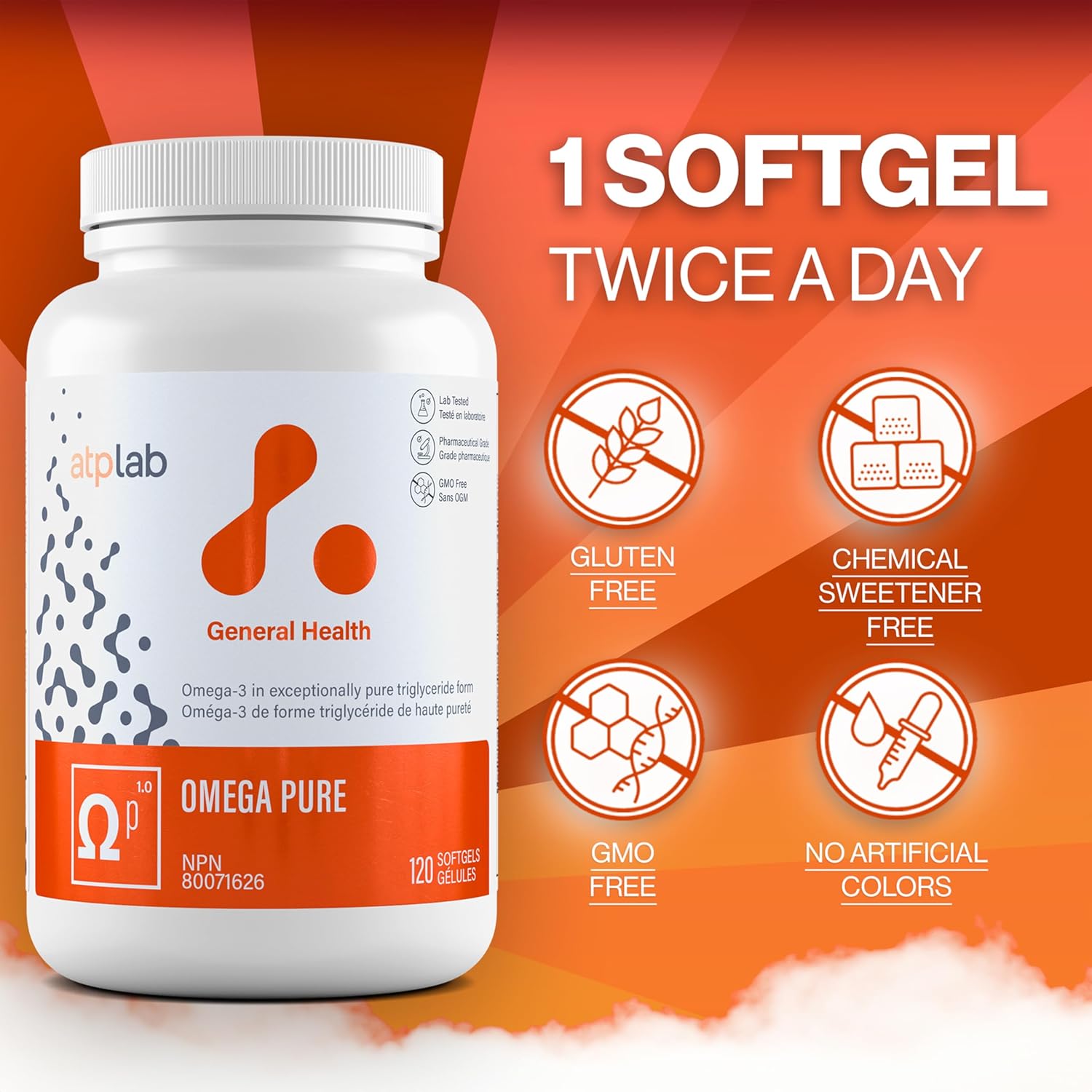 Atp Lab - Omega Pure 120 Softgels 60-Day Supply - Omega-3 In Exceptionally Pure Triglyceride Form - Helps Support Cognitive Health, Brain Function And Cardiovascular Health - Gluten-Free And Non-Gmo