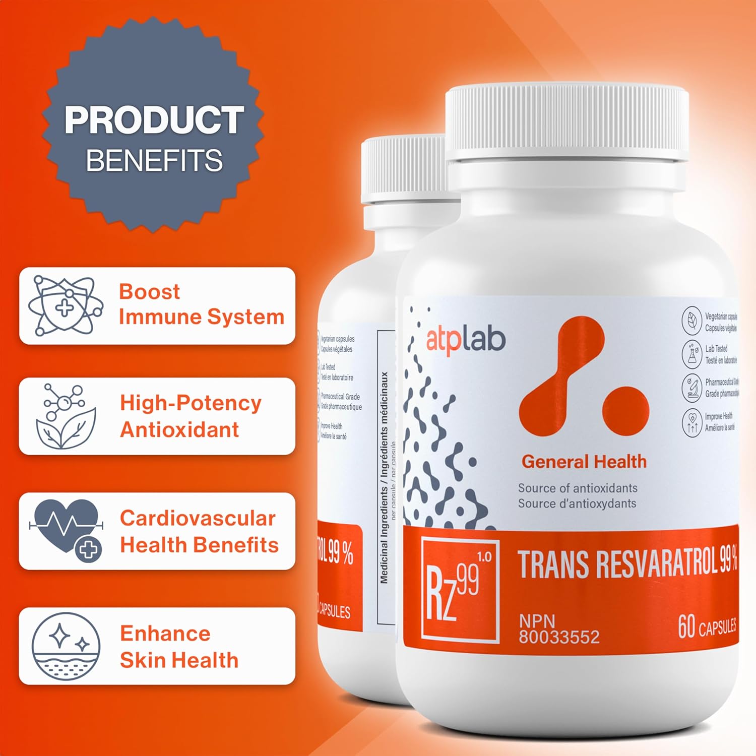 Atp Lab | Trans Resveratrol 99% 60 Caps | Source Of Antioxidants