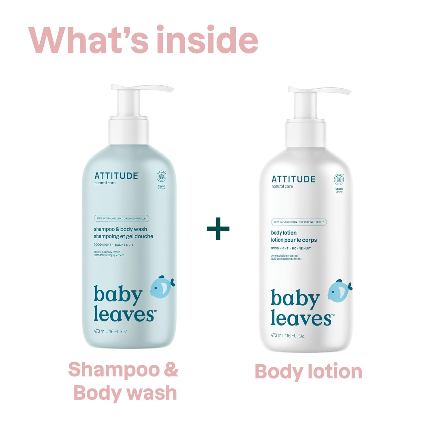 Attitude Baby 2-In-1 Shampoo & Body Wash And Baby Lotion Set, Ewg Verified, Dermatologically Tested Soap And Moisturizing Cream, Vegan, Good Night, 16 Fl Oz Each