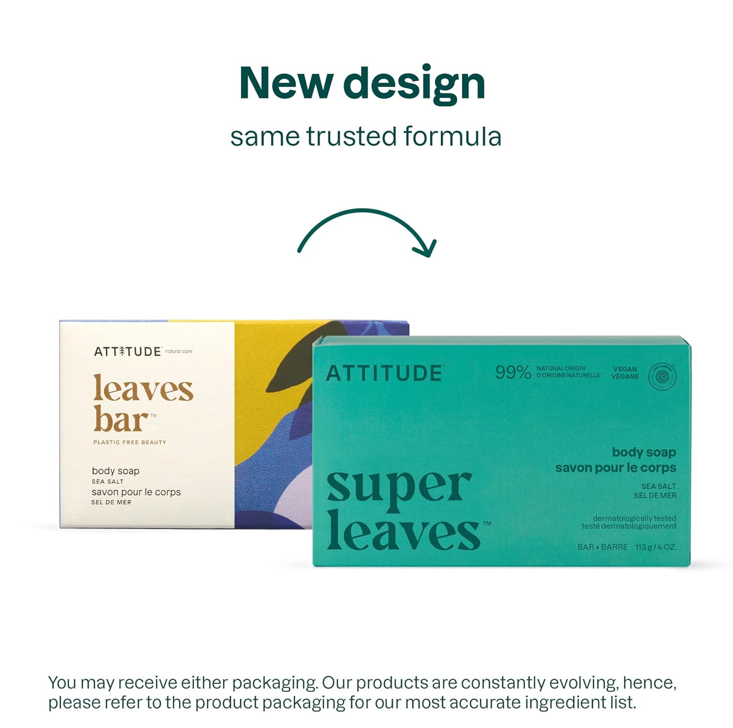 Attitude Body Soap Bar, Natural Origin, Protects And Softens Dry Skin, Coconut & Olive Oils, For Men And Women, Ewg Verified & Vegan, Sandalwood, 4 Oz