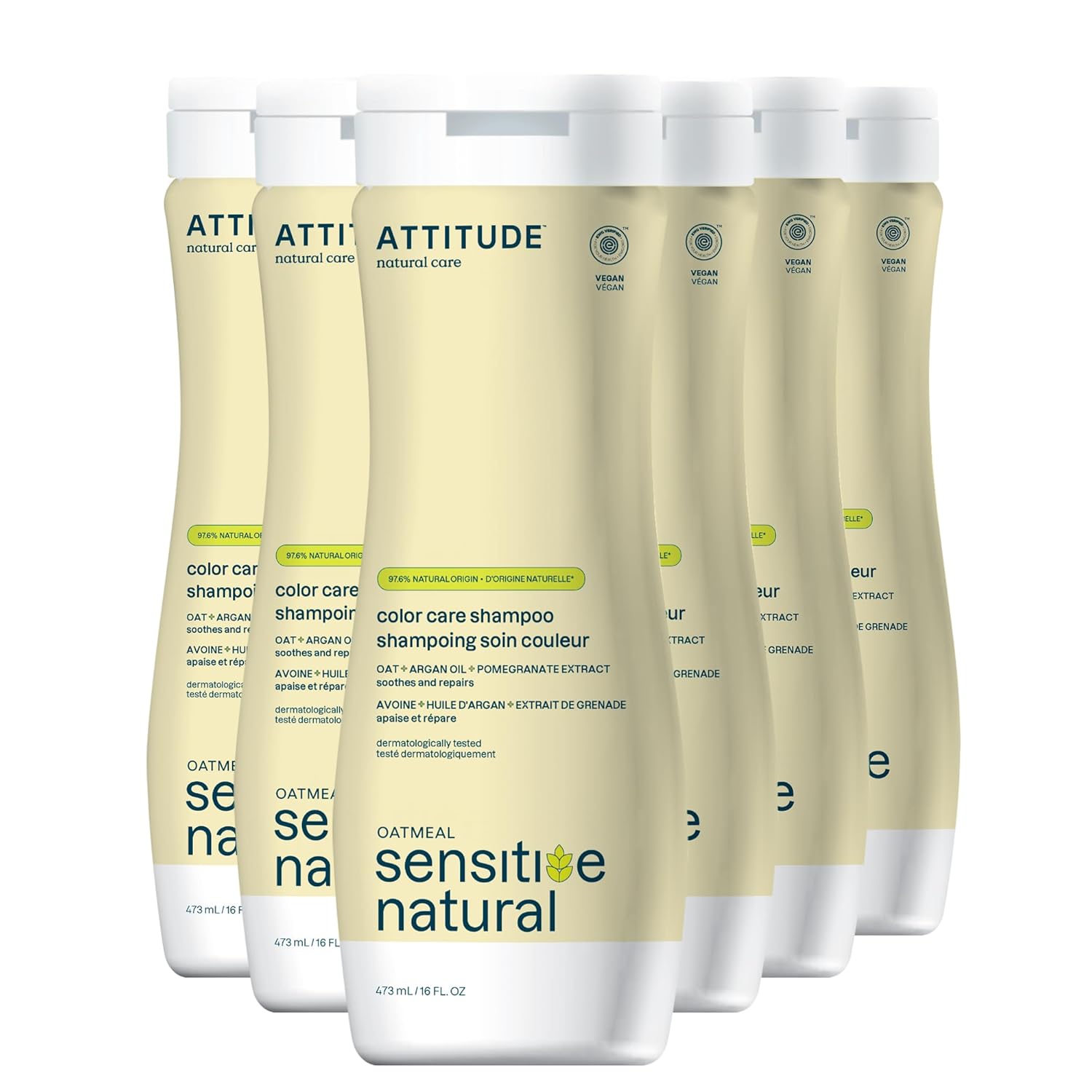Attitude Color Care Hair Shampoo For Sensitive Dry Scalp, Ewg Verified, Soothing Oat, Protects Color, Naturally Derived Ingredients, Vegan And Plant-Based, Color Care, Argan Oil, 16 Fl Oz (Pack Of 6)