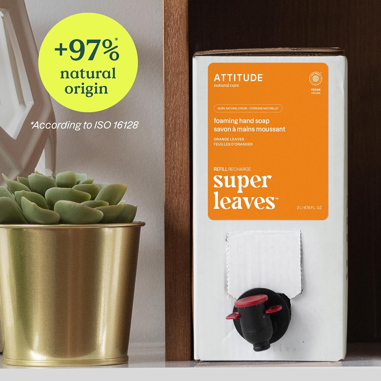 Attitude Foaming Hand Soap, Ewg Verified, Plant And Mineral-Based Ingredients, Vegan And Cruelty-Free Personal Care Products, Orange Leaves, Bulk Refill, 67.62 Fl Oz