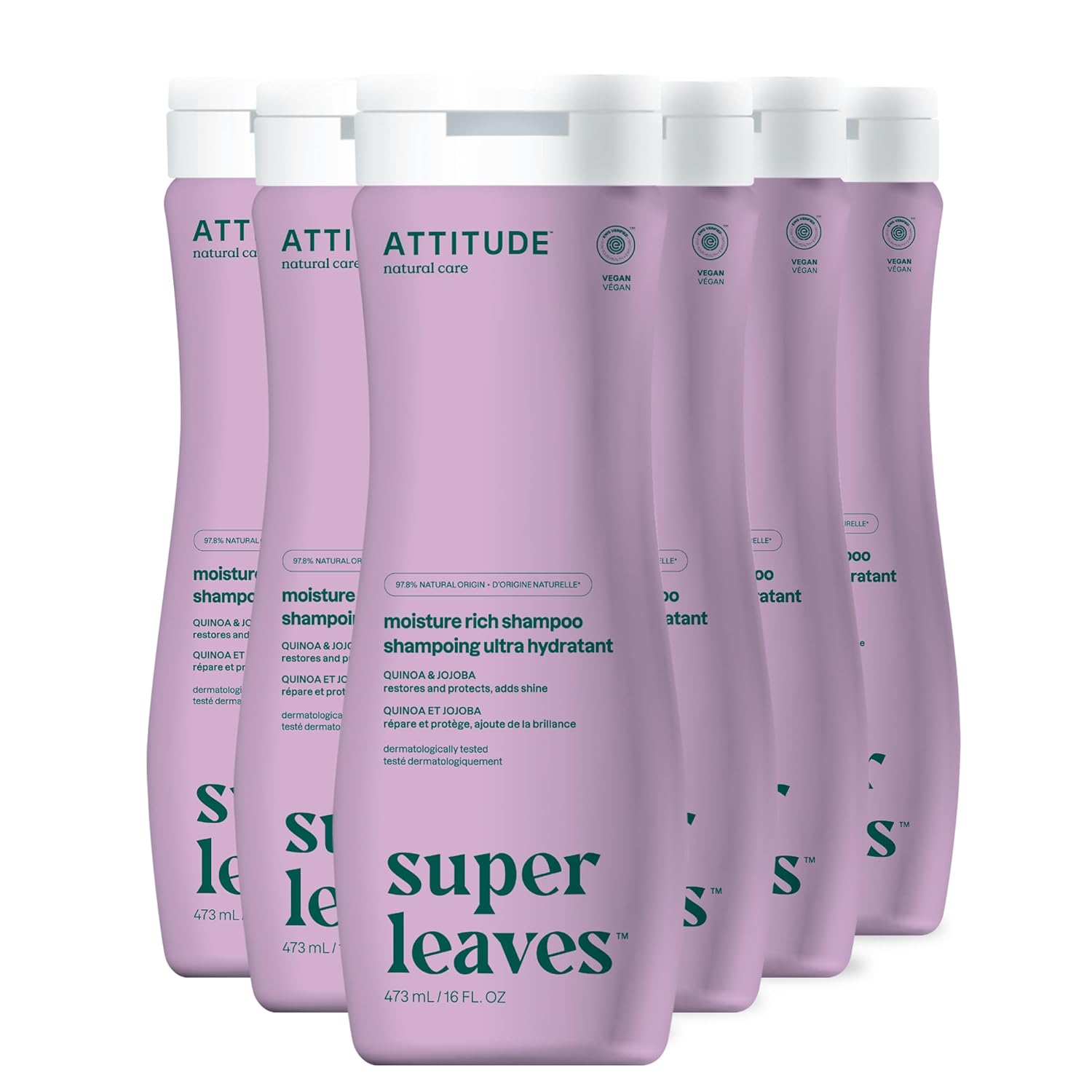Attitude Moisture Rich Hair Shampoo, Ewg Verified, For Dry And Damaged Hair, Naturally Derived Ingredients, Vegan And Plant Based, Quinoa And Jojoba, 16 Fl Oz (Pack Of 6)