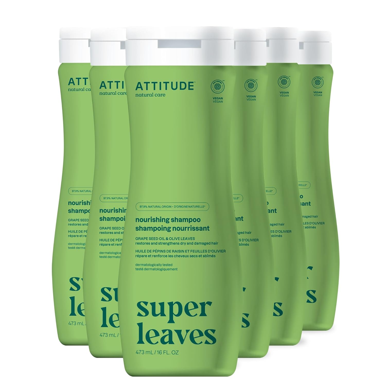 Attitude Nourishing Hair Shampoo, Ewg Verified, For Dry And Damaged Hair, Naturally Derived Ingredients, Vegan And Plant Based, Grapeseed Oil And Olive Leaves, 16 Fl Oz (Pack Of 6)