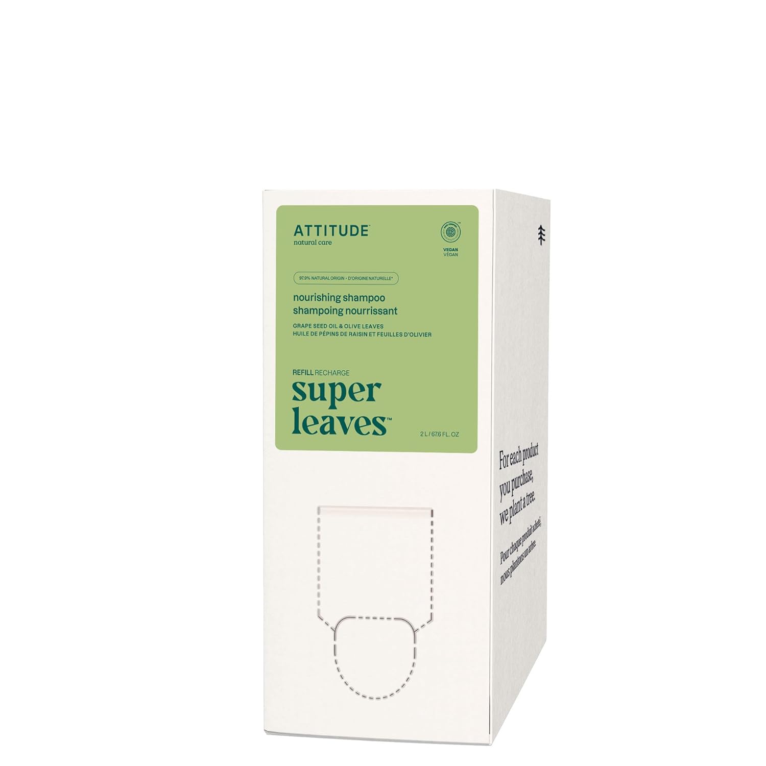 Attitude Nourishing Hair Shampoo, Ewg Verified, For Dry And Damaged Hair, Naturally Derived Ingredients, Vegan And Plant Based, Grapeseed Oil And Olive Leaves, Bulk Refill, 67.6 Fl Oz