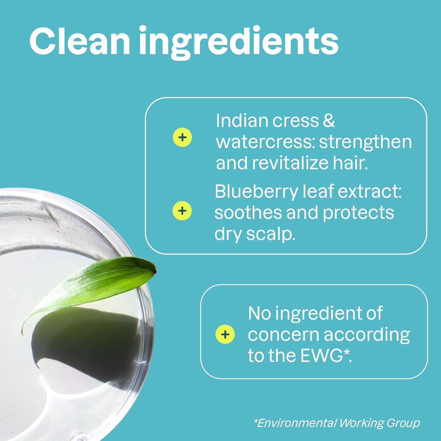 NATURALLY DERIVED FORMULA: Formulated with 97% natural origin ingredients¹, including watercress and Indian cress, this shampoo helps revitalize and strengthen hair from root to tip. Free from silicones and SLES for a cleaner, gentler wash