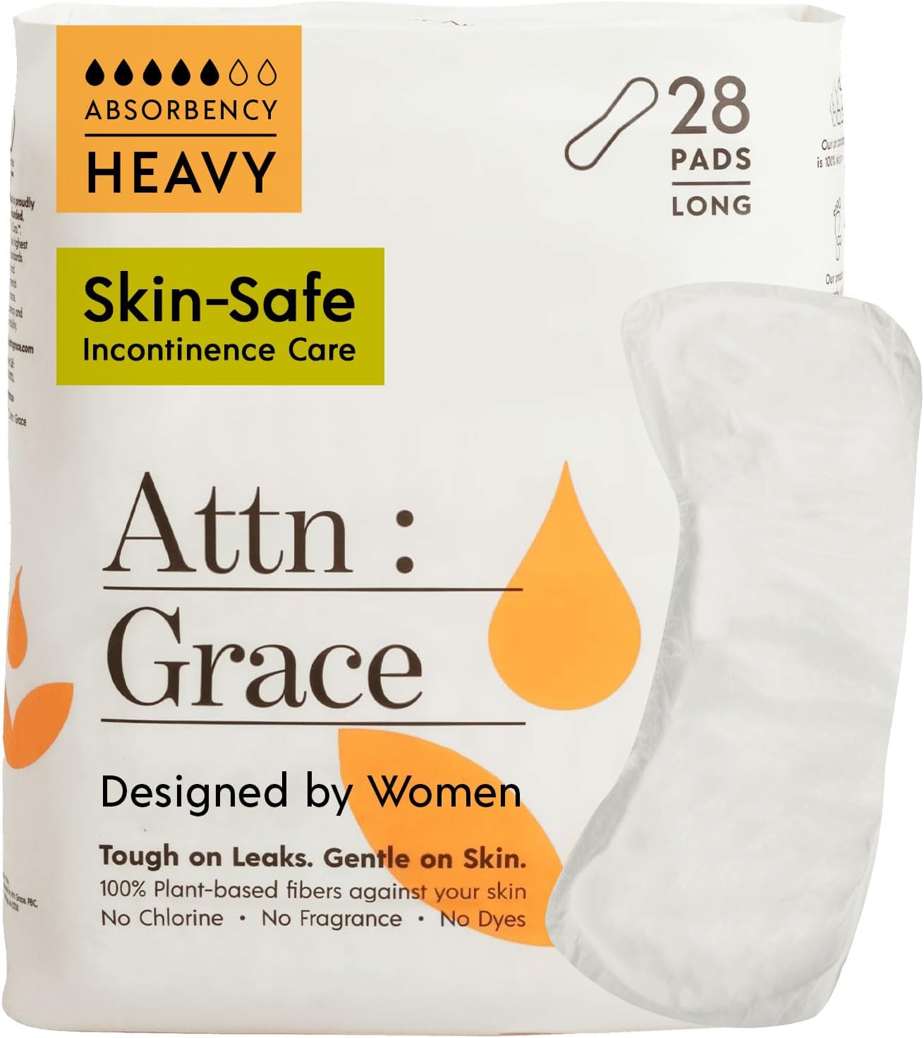 Attn: Grace Heavy Incontinence Pads For Women (28-Pack) - High Absorbency Protection For Heavy Bladder Leaks, Postpartum, Or Postpartum/Discreet, 100% Breathable & Plant-Based/Soothes Skin
