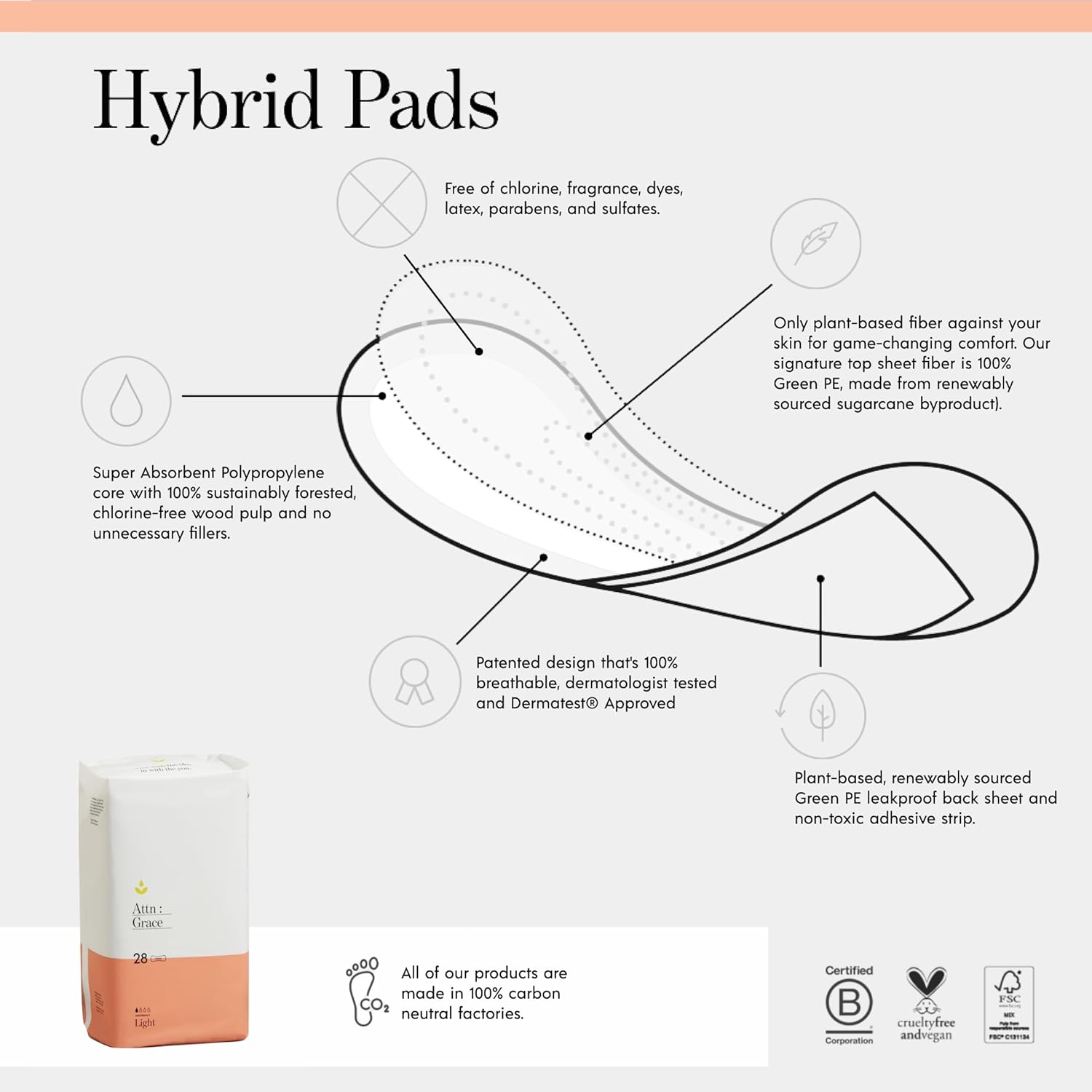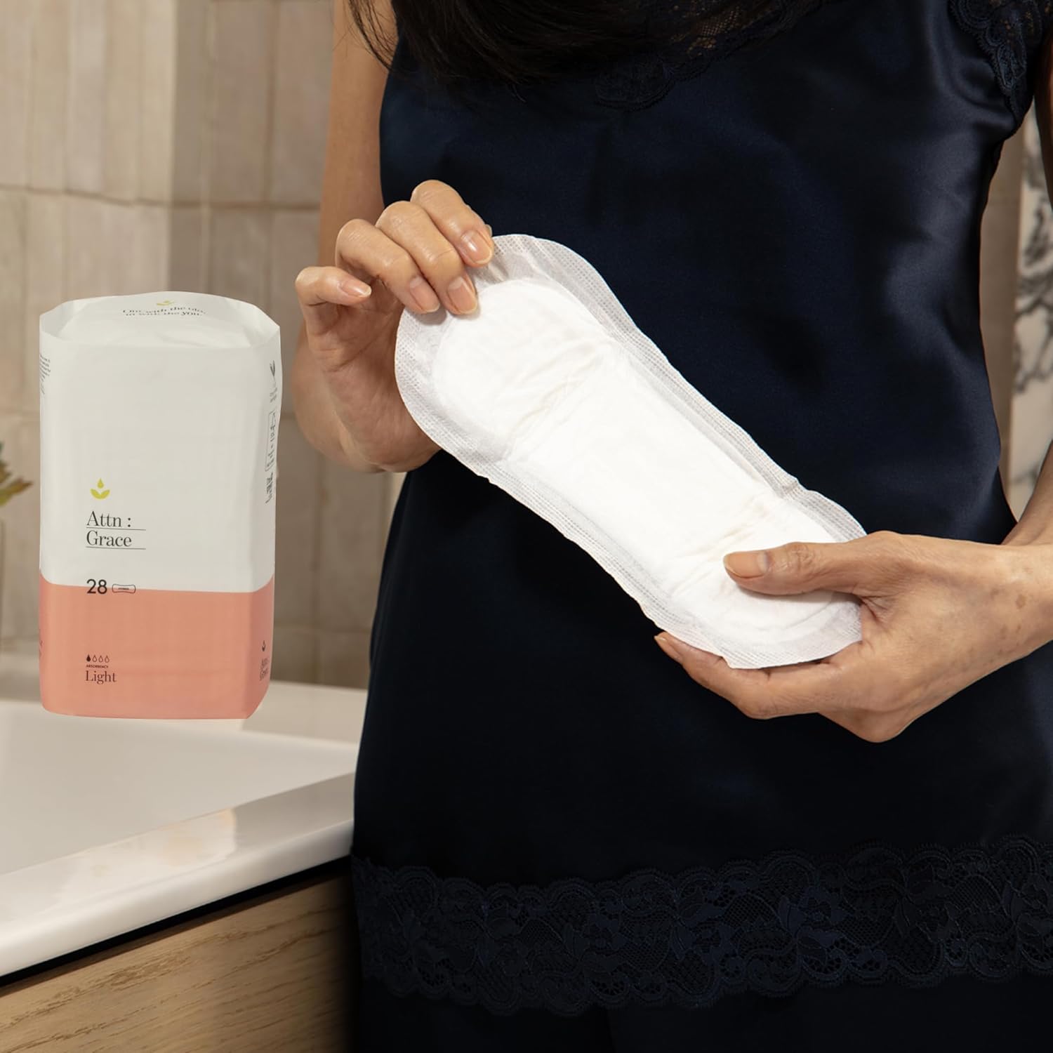 Attn: Grace Hybrid Incontinence Pads (28 Pack) & Flushable Wet Wipes Combo For Women - Light Absorbency & Wipes With Aloe Vera And Coconut Oil | Postpartum Support, Sensitive Skin-Friendly, Breathable