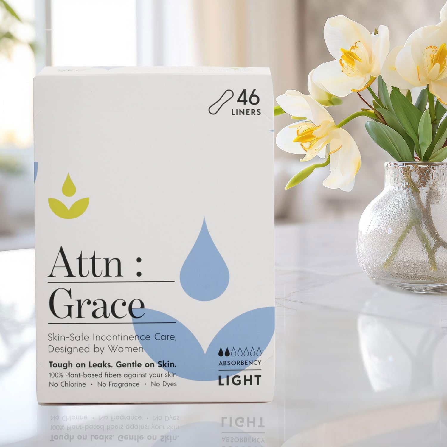 Attn: Grace Panty Liners For Women - 46 Liners β For Light Urinary Incontinence, Bladder Leakage Or Postpartum - 100% Breathable & Plant-Based Materials Active Odor Control - Free From Harsh Chemicals