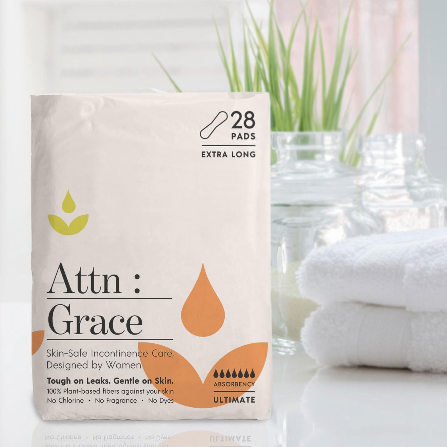 Attn: Grace Ultimate Incontinence Pads For Women (28-Pack) - Discreet High Absorbency Sensitive Skin Protection | Heavy Bladder Leaks Or Postpartum | 100% Breathable & Plant-Based
