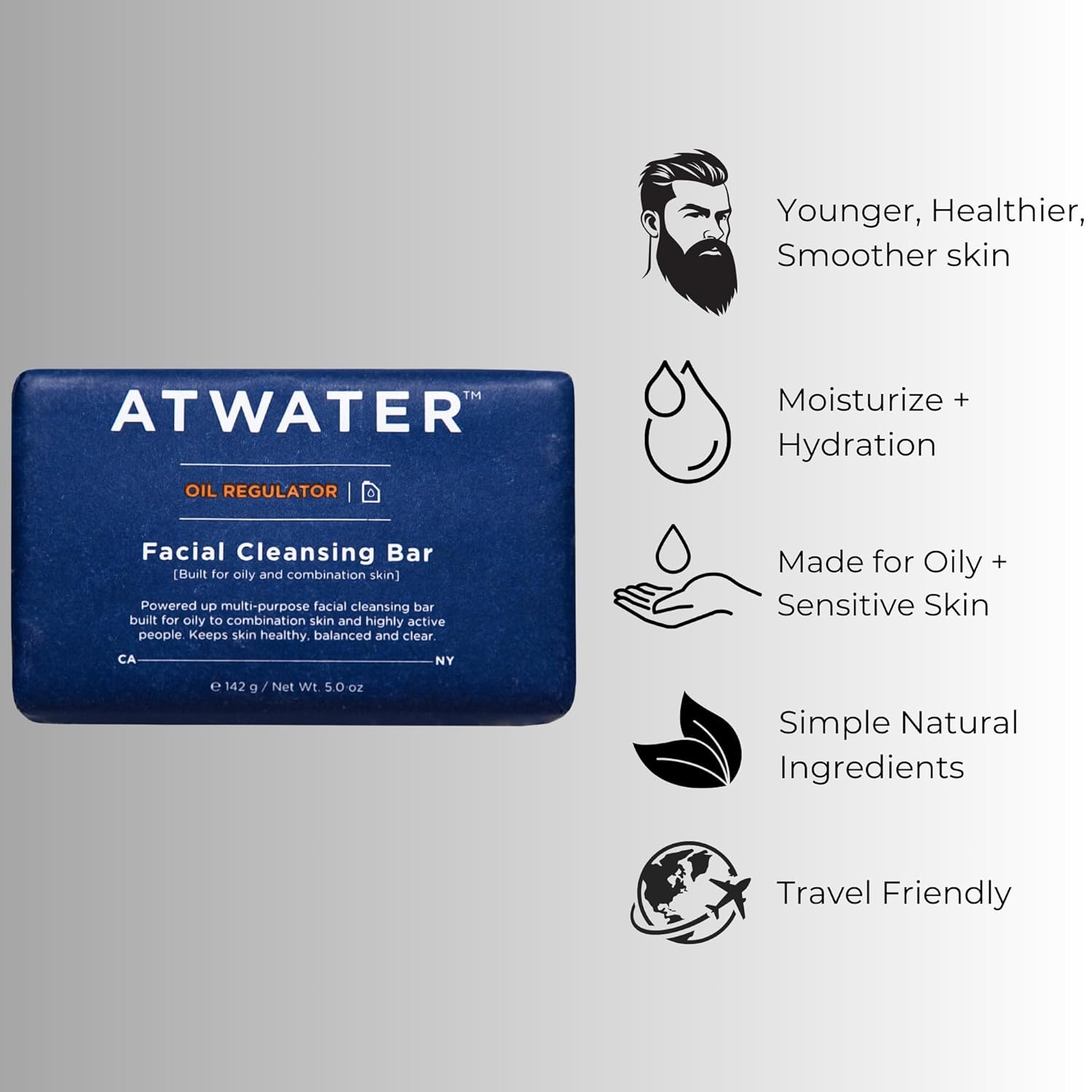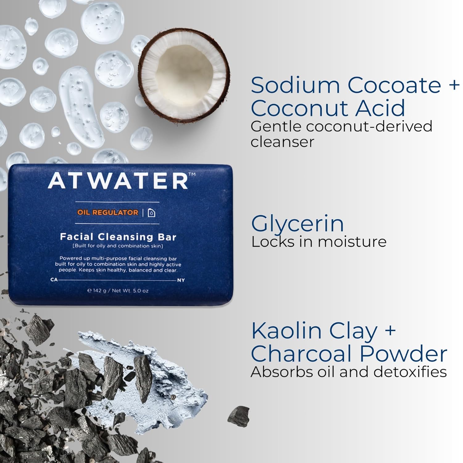 Atwater Charcoal Facial Cleansing Bar For Oily To Combination Skin, Sulfate Free Rich Lathering Charcoal Face Soap; Gentle Face Cleanser For Daily Use; Natural Men’S Face Wash - 142 Grams / 5 Oz