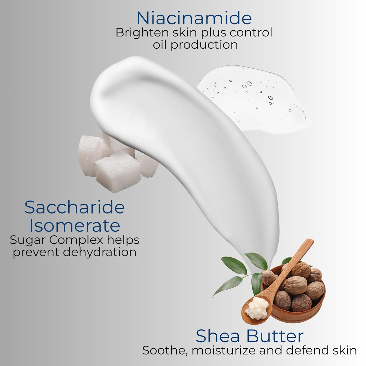 About this item Powerful Hydration: Fortified with 5% Niacinamide and Shea Butter, this facial moisturizer intensely hydrates skin to restore its natural moisture barrier and keep it soft, smooth and supple Mens Face Lotion: The anti-aging formula helps boost collagen production and strengthen skin's defenses against environmental damage for a youthful complexion, keeping your skin fresh and healthy looking Lightweight Hydration: The non-greasy cream absorbs quickly to hydrate skin without clogging pores or leaving a heavy residue, smoothes and reinvigorates tired skin Mens Face Lotion for Dry Skin: Nourishes the skin's natural moisture barrier for protected, healthier looking skin that withstands daily stresses. Specifically designed for dry skin enriched with powerful antioxidants and nourishing plant oils Men Skin Care: Our dermatologist-tested facial moisturizer is non-comedogenic and hypoallergenic containing no parabens or fragrances which could irritate sensitive skin; its clean, cruelty free and vegan and perfect for travel See more product details,Powerful Hydration: Fortified with 5% Niacinamide and Shea Butter, this facial moisturizer intensely hydrates skin to restore its natural moisture barrier and keep it soft, smooth and supple,Mens Face Lotion: The anti-aging formula helps boost collagen production and strengthen skin's defenses against environmental damage for a youthful complexion, keeping your skin fresh and healthy looking,Lightweight Hydration: The non-greasy cream absorbs quickly to hydrate skin without clogging pores or leaving a heavy residue, smoothes and reinvigorates tired skin,Mens Face Lotion for Dry Skin: Nourishes the skin's natural moisture barrier for protected, healthier looking skin that withstands daily stresses. Specifically designed for dry skin enriched with powerful antioxidants and nourishing plant oils,Men Skin Care: Our dermatologist-tested facial moisturizer is non-comedogenic and hypoallergenic containing no parabens or fragrances which could irritate sensitive skin; its clean, cruelty free and vegan and perfect for travel