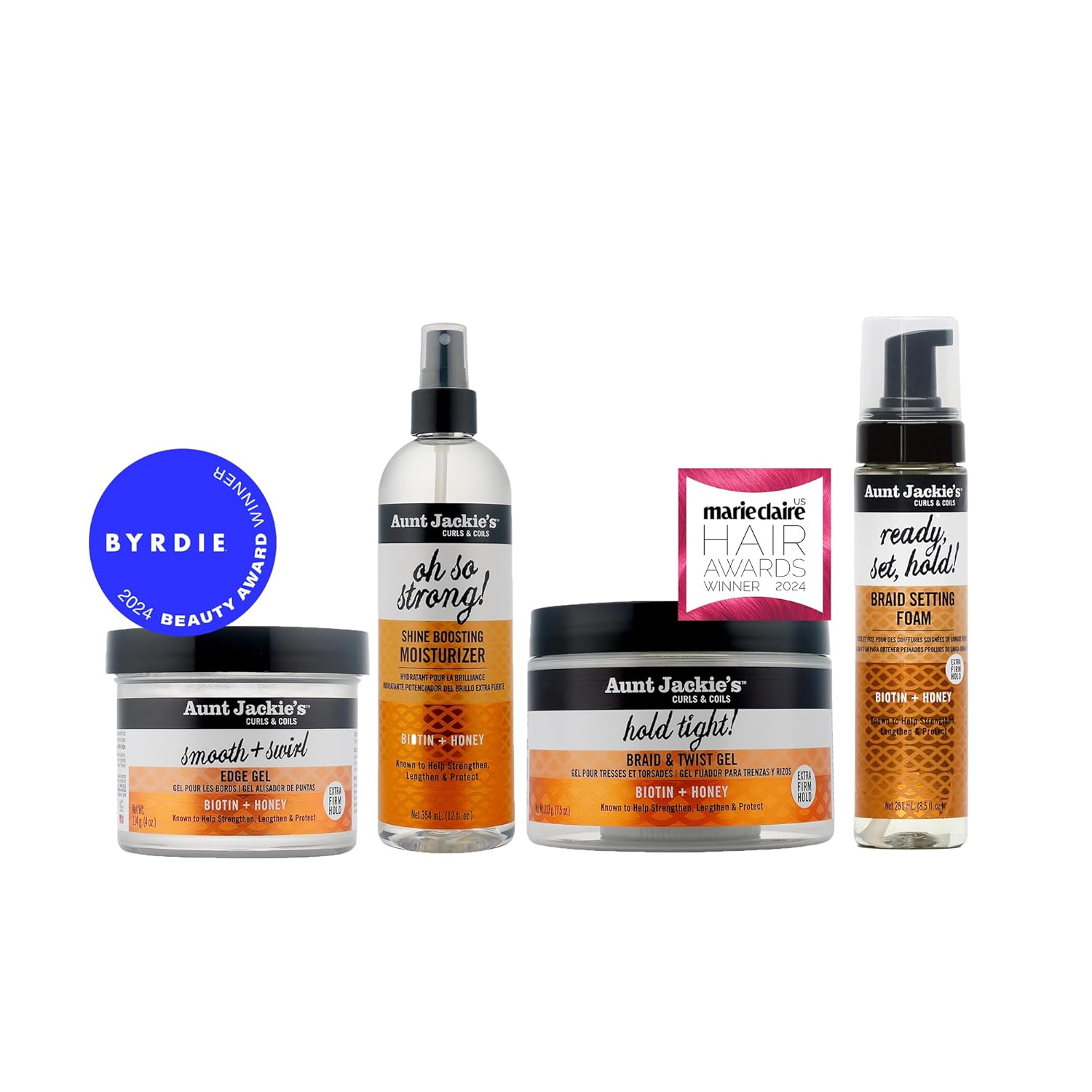 Be A Baby Hair Baddie! Aunt JackieāS Braid + Twist Collection Smooth + Swirl Edge Gel With Extra Firm Hold Gives You The Control You Crave And Smooths Frizz Without Residue Or Build Up. Specially Blended With The Award-Winning Dynamic Duo Of Biotin + Honey, This Extra Firm Edge Gel Allows You To Enjoy Neat, Smooth Styles With Beautiful Shine, While Helping To Strengthen, Lengthen, And Protect Hair. Lavish Honey Supports Moisture Retention, While Protein-Rich Biotin Reveals The Natural Beauty Of Braids, Twists, And Locs. Directions: After Braid Styles Are Complete, Apply The Desired Amount Around The Hairline. Smooth With A Brush Or Small Tooth Comb And Wrap With A Scarf To Set For A Sleek Finish. For Beautiful Braids, Twists, And Locs, Use The Full Aunt JackieāS Braid + Twist Collection