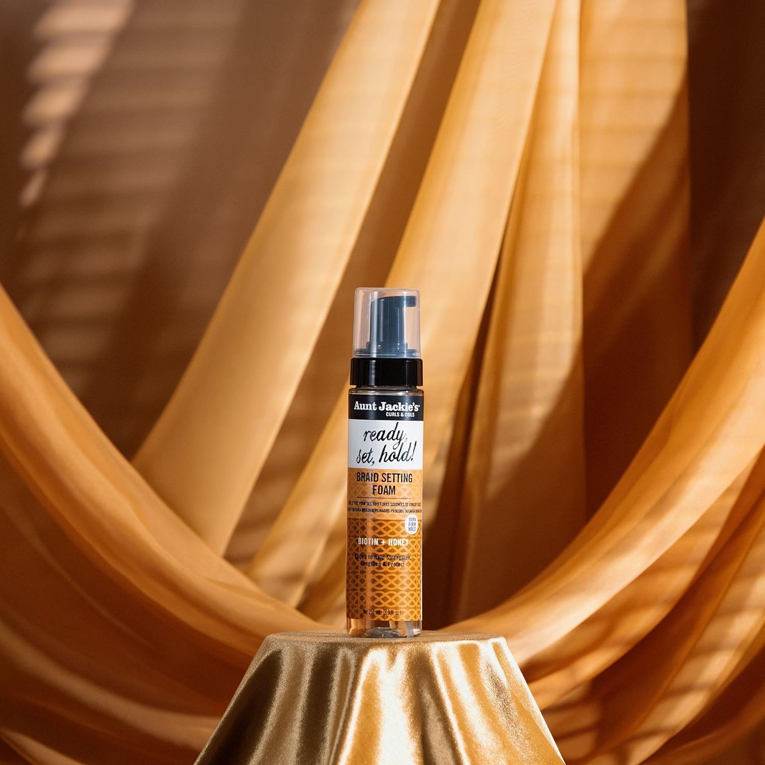 Aunt Jackie's Curls & Coils Biotin + Honey Ready, Set, Hold Braid Setting Foam with Extra Firm Hold, 8.5 fl oz