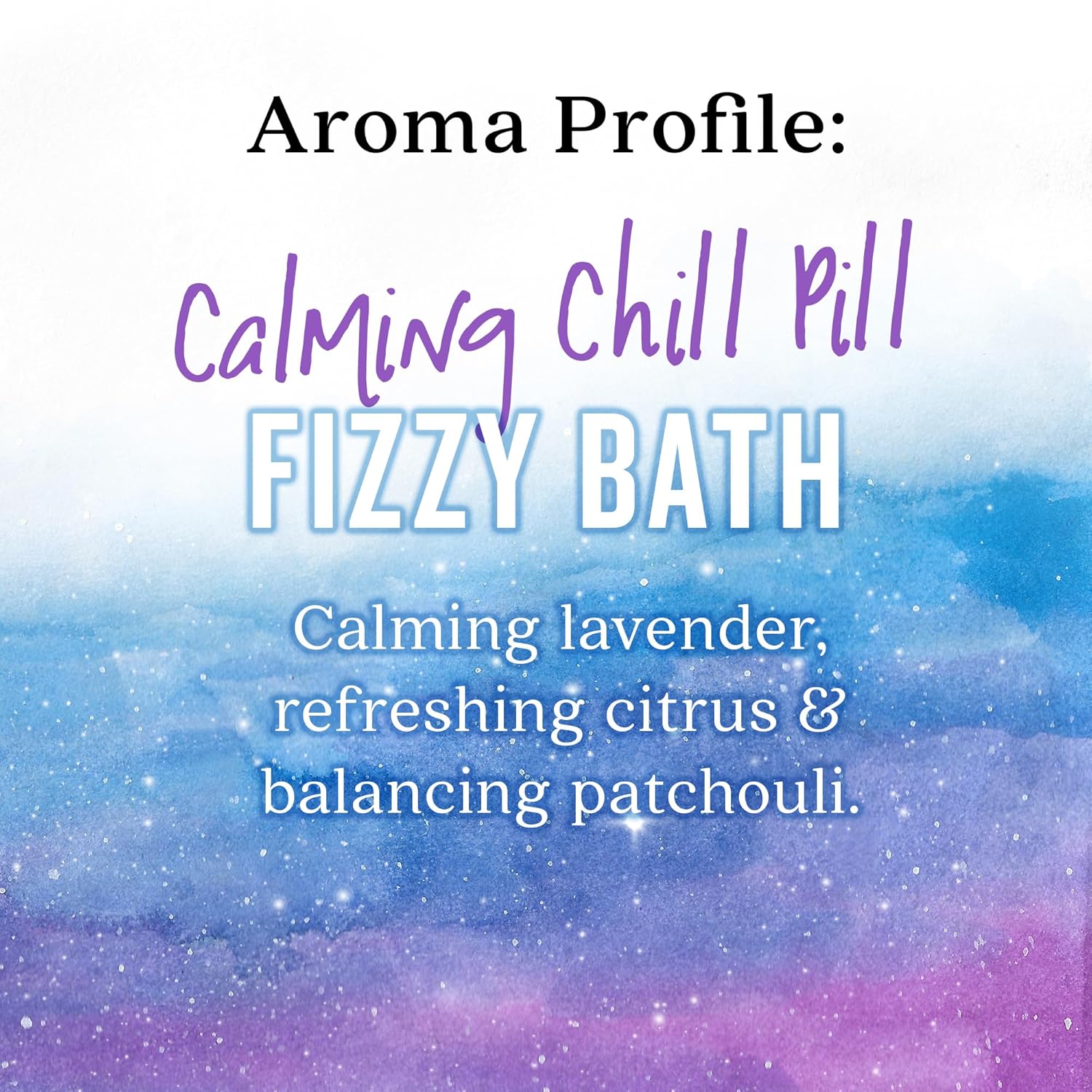 CHILL PILL FIZZY BATH - A unique blend of calming lavender, refreshing citrus, and balancing patchouli that leaves the skin soft and smooth