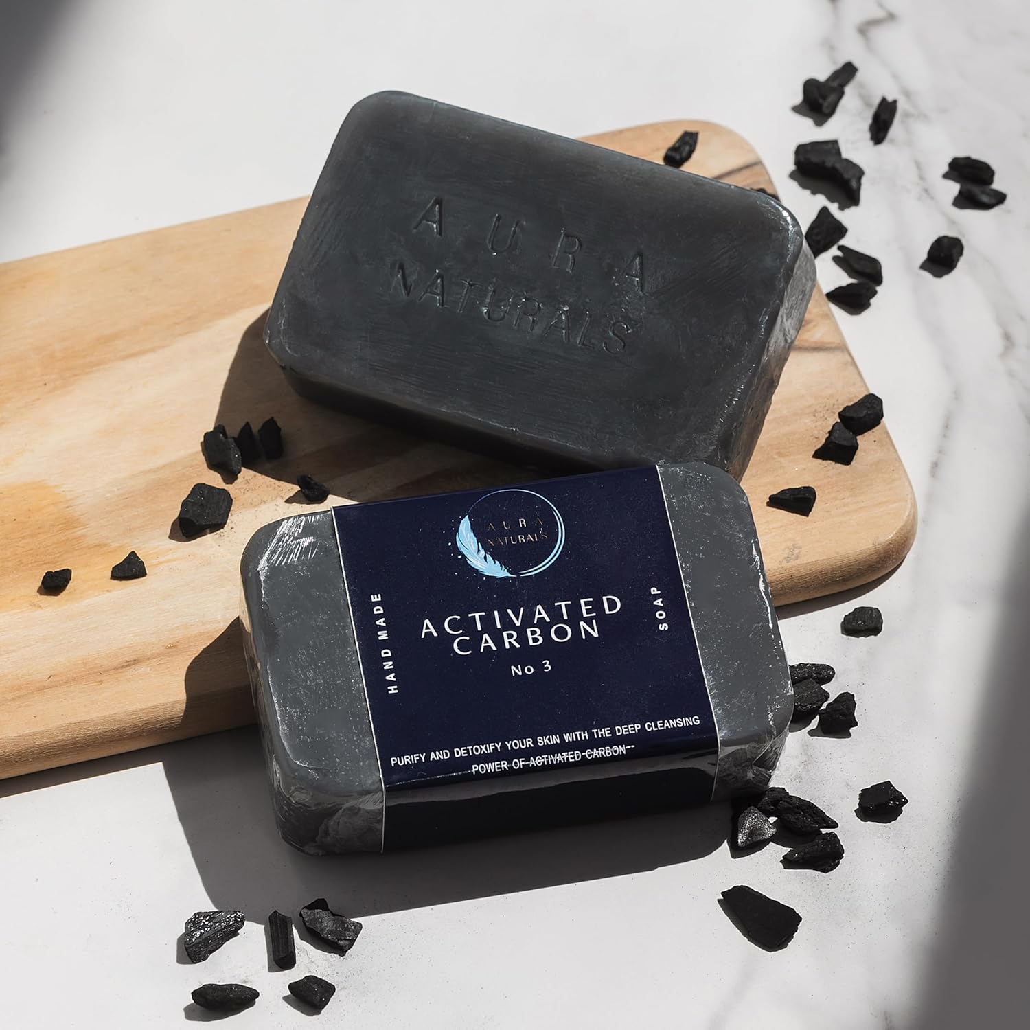 About this item Four Invigorating Scents: Enjoy a refreshing variety with the Aura Naturals men's soap bar pack featuring four distinct scentsâSandalwood, Lemon, Activated Carbon, and Chamomileâeach offering a unique experience for your skin. Generous 150g Bars: Each face and body soap bar weighs 150g, providing long-lasting use and a rich lather that thoroughly cleanses your skin. Feel the difference in your routine by adding handmade natural soap for men filled with nutrient-rich ingredients. Comprehensive Skin Care: Each natural soap bar which part of our soap bar men pack is formulated to cleanse, exfoliate dead skin cells, hydrate, and reduce irritation, leaving your skin feeling soft, smooth, and revitalized. Face and Body Friendly: Versatile and gentle enough for both your face and body, the Aura Naturals scented soaps provide all-around care for your skin. Whether you need moisturising soap bar or mens exfoliating soap bar, you'll get it in this set. Luxurious Soap Bar Gift Set: Beautifully packaged, this soaps gift set makes a thoughtful and luxurious gift for any occasion, including Christmas and birthdays, perfect for the special men in your life. âș See more product details,Four Invigorating Scents: Enjoy a refreshing variety with the Aura Naturals men's soap bar pack featuring four distinct scentsâSandalwood, Lemon, Activated Carbon, and Chamomileâeach offering a unique experience for your skin,Generous 150g Bars: Each face and body soap bar weighs 150g, providing long-lasting use and a rich lather that thoroughly cleanses your skin. Feel the difference in your routine by adding handmade natural soap for men filled with nutrient-rich ingredients,Comprehensive Skin Care: Each natural soap bar which part of our soap bar men pack is formulated to cleanse, exfoliate dead skin cells, hydrate, and reduce irritation, leaving your skin feeling soft, smooth, and revitalized,Face and Body Friendly: Versatile and gentle enough for both your face and body, the Aura Naturals scented soaps provide all-around care for your skin. Whether you need moisturising soap bar or mens exfoliating soap bar, you'll get it in this set,Luxurious Soap Bar Gift Set: Beautifully packaged, this soaps gift set makes a thoughtful and luxurious gift for any occasion, including Christmas and birthdays, perfect for the special men in your life