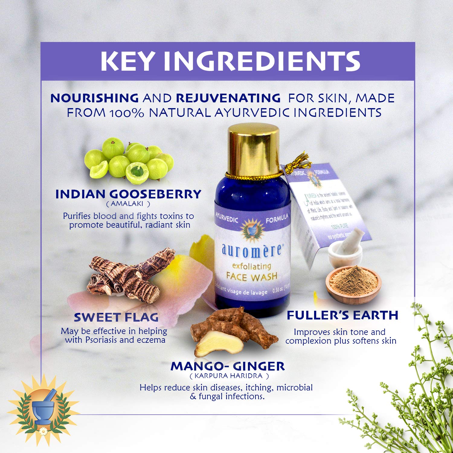 Auromere Ayurvedic Exfoliating Face Wash - Vegan, All Natural, Non Gmo, Gentle Facial Polish & Cleanser (.56 Oz)