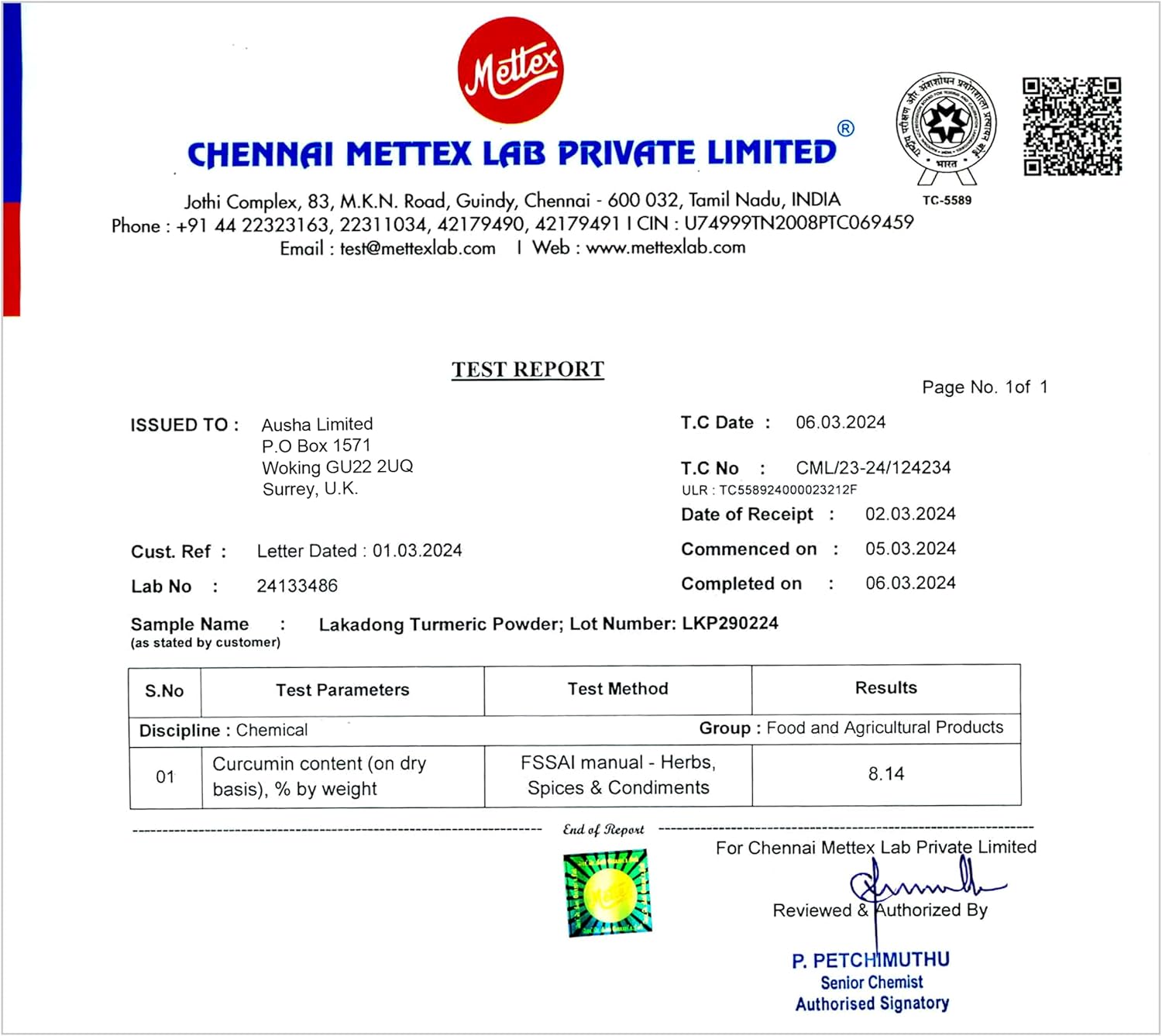 Ausha Lakadong Turmeric Powder 200G - 8-9% Curcumin - Double Strength Turmeric
