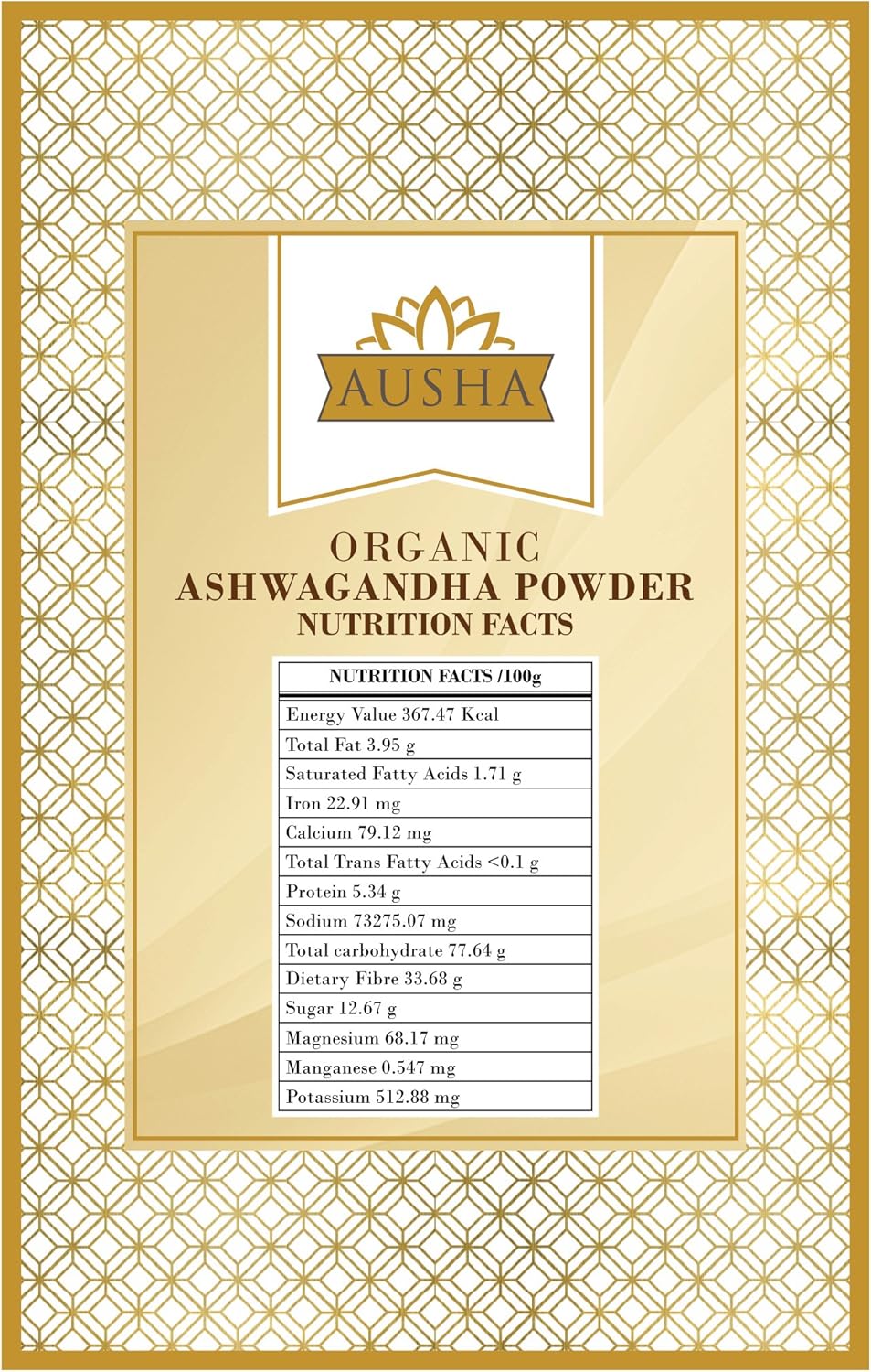 Ausha Organic Ashwagandha Powder 500G | High Strength - Uk Certified Organic By Soil Association - For Stress And Anxiety Relief, Energy, Sleep Aid - Whole Ashwagandha Root Used