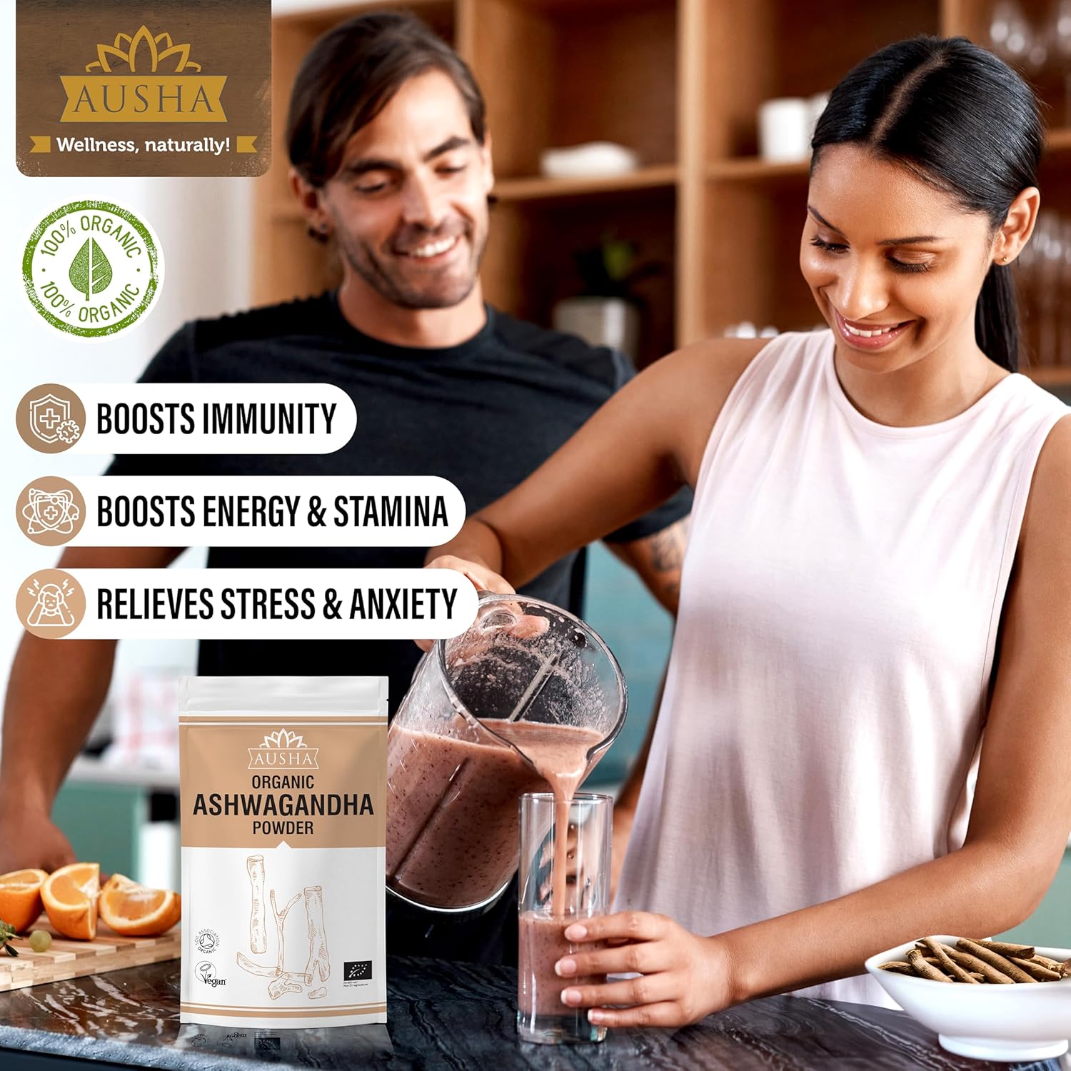 Ausha Organic Ashwagandha Root Powder 250G | Uk Certified Organic By Soil Association -Withanolides, Stress And Anxiety Relief, Energy, Sleep Aid