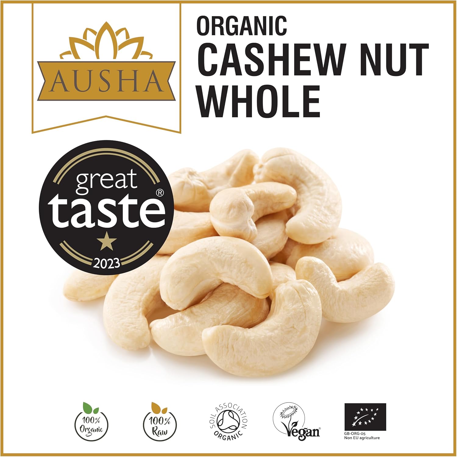 Ausha Organic Cashew Nuts Whole 200G - Uk Certified Organic By Soil Association - 1* Great Taste Award