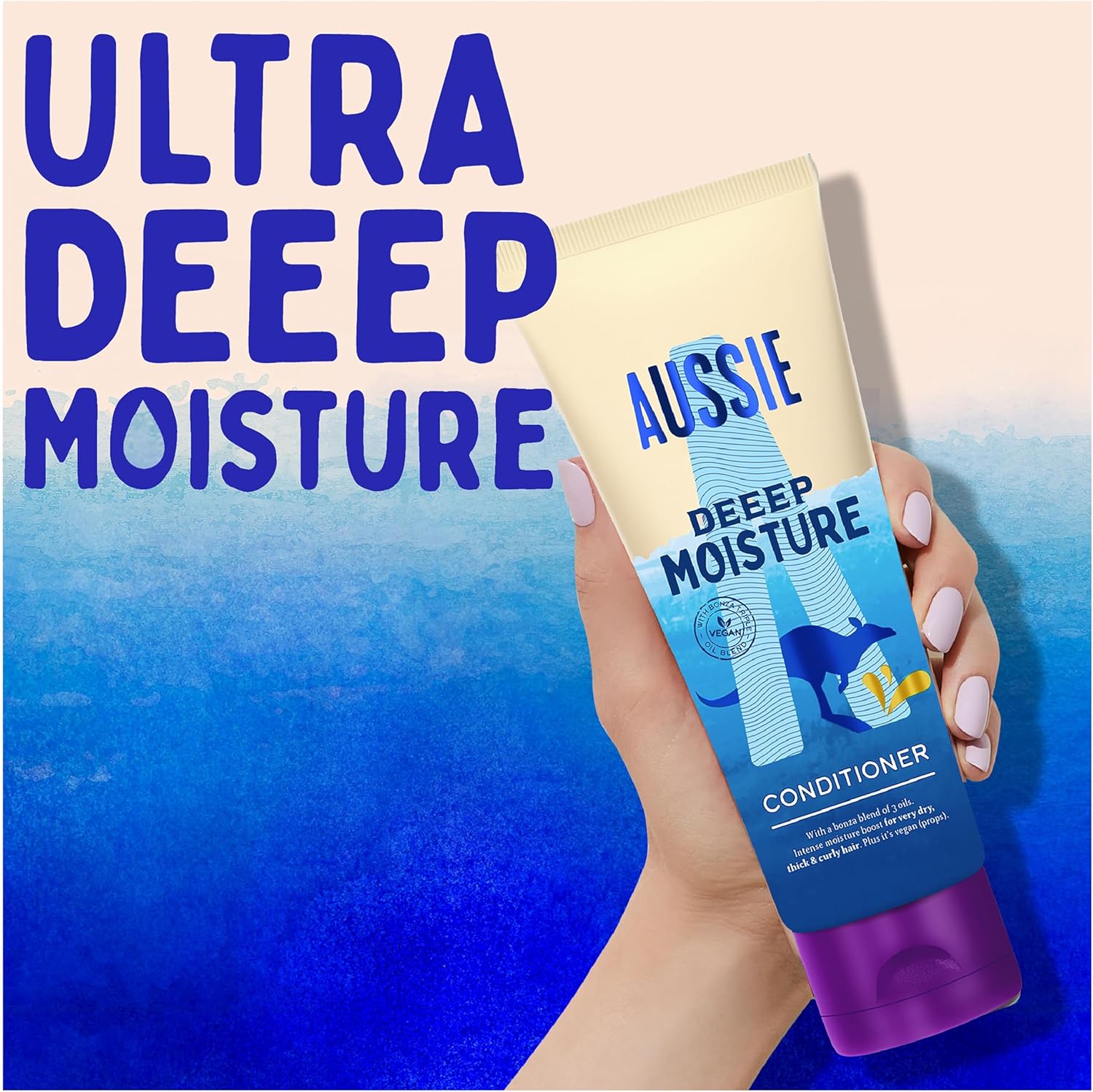 Aussie Deeep Moisture Vegan Hair Conditioner - For Very Dry, Thick And Curly Hair - With Avocado Oil, Jojoba Oil And Macadamia Nut Oil, 6 Units X 200 Ml