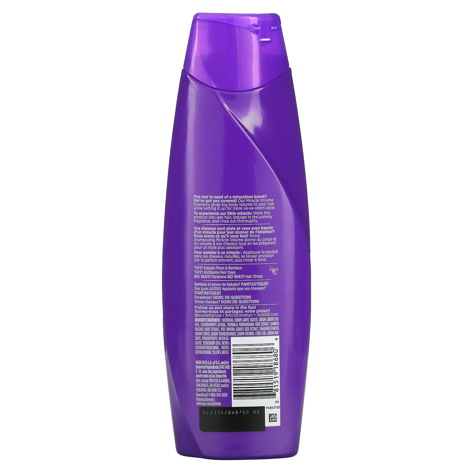 Next Level Volume. Add a little extra oomph to your ‘do. Kakadu plum- and bamboo-infused Aussie Miracle Volume Shampoo adds body that gives your hair style lift off. And the scent Those citrusy bright notes with a hint of florals and ocean are enough to have your head in the clouds.