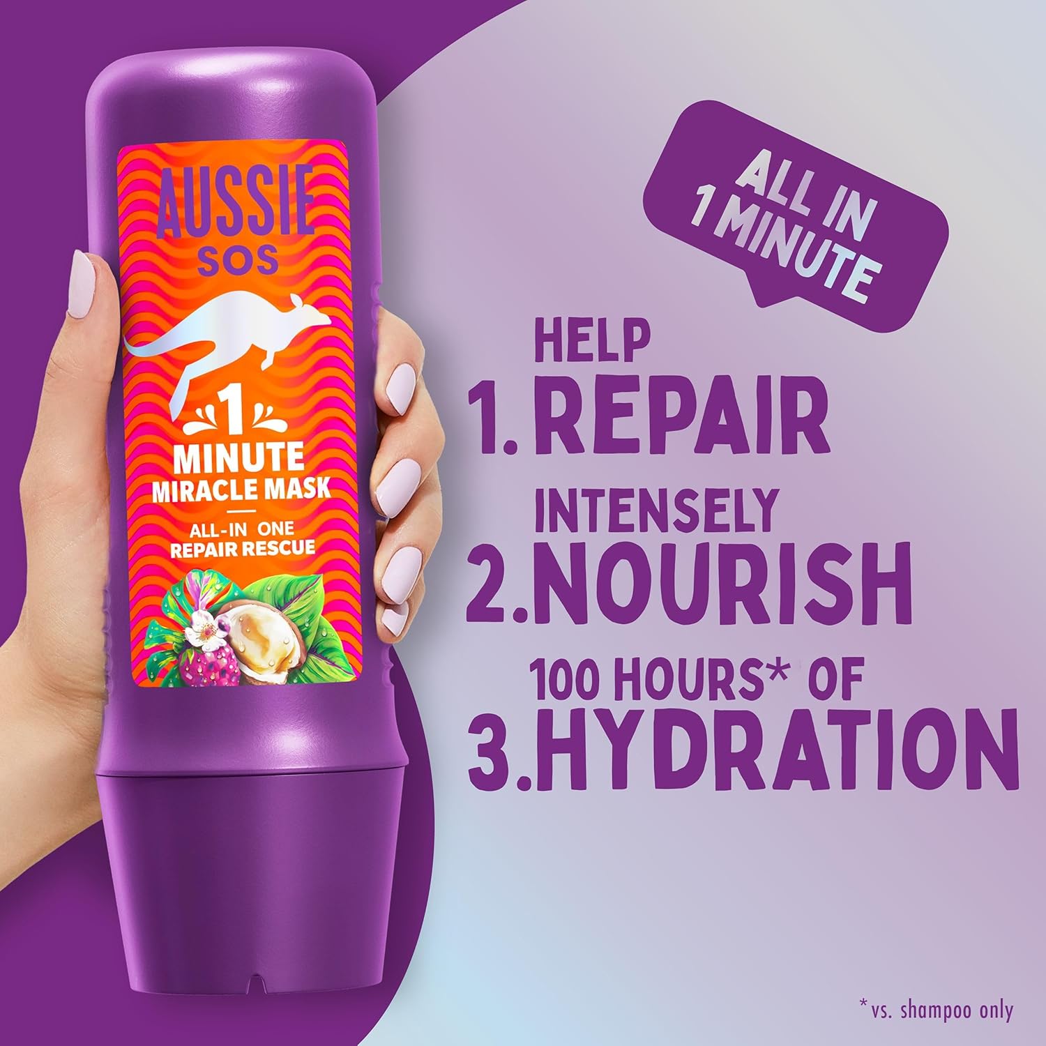 Aussie Sos 1 Minute Miracle Repair Rescue Mask 250Ml To Deeply Nourish Dry, Damaged Hair