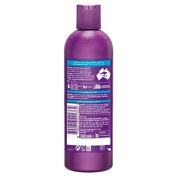 Long Hair Calling Sos? Don’T Panic, We’Re Throwing You A Lifeline With The Aussie Sos Strength & Length Conditioner. This Detangling Conditioner Is Infused With Australian Superfoods! It Softens And Strengthens Weak Hair While Helping To Prevent Breakage* And Split Ends, Leaving You With Sensational, Life-Loving And Heroically Hydrated Hair In No Time At All! For Best Results, Use Together With The Aussie Sos Strength & Length Shampoo. *Against Styling Damage, Vs. Non-Conditioning Shampoo Alone. Features And Benefits: Strength & Length: Aussie Detangling Conditioner Softens And Strengthens Weak Hair, While Helping Prevent Breakage And Split Ends Long, Weak And Brittle Hair Calling Sos? We'Re Throwing You An Aussie Lifeline To Leave You With Heroically Hydrated Hair Say G'Day To Heroically Hydrated, Sensational And Life-Loving Hair In No Time At All. From First Wash, Hair Will Be Left Feeling Soft, Smooth And Beautifully Hydrated Vegan Formula Infused With Australian Superfoods: Our Aussie Sos Range Is Vegan, Free From Animal-Derived Ingredients Or By-Products And Infused With Australian Superfoods For A Complete Hair Rescue, Follow Our Routine With Aussie Sos Strength & Length Shampoo And Conditioner For Long And Brittle Hair. For Extra Moisture, Also Use Our Supercharged Repair Hair Mask Or Our Sos Super Serum Recyclable: Our Conditioner Tube Is Recyclable The Aussie Philosophy: There’S More To Life Than Hair, But It’S A Good Place To Start