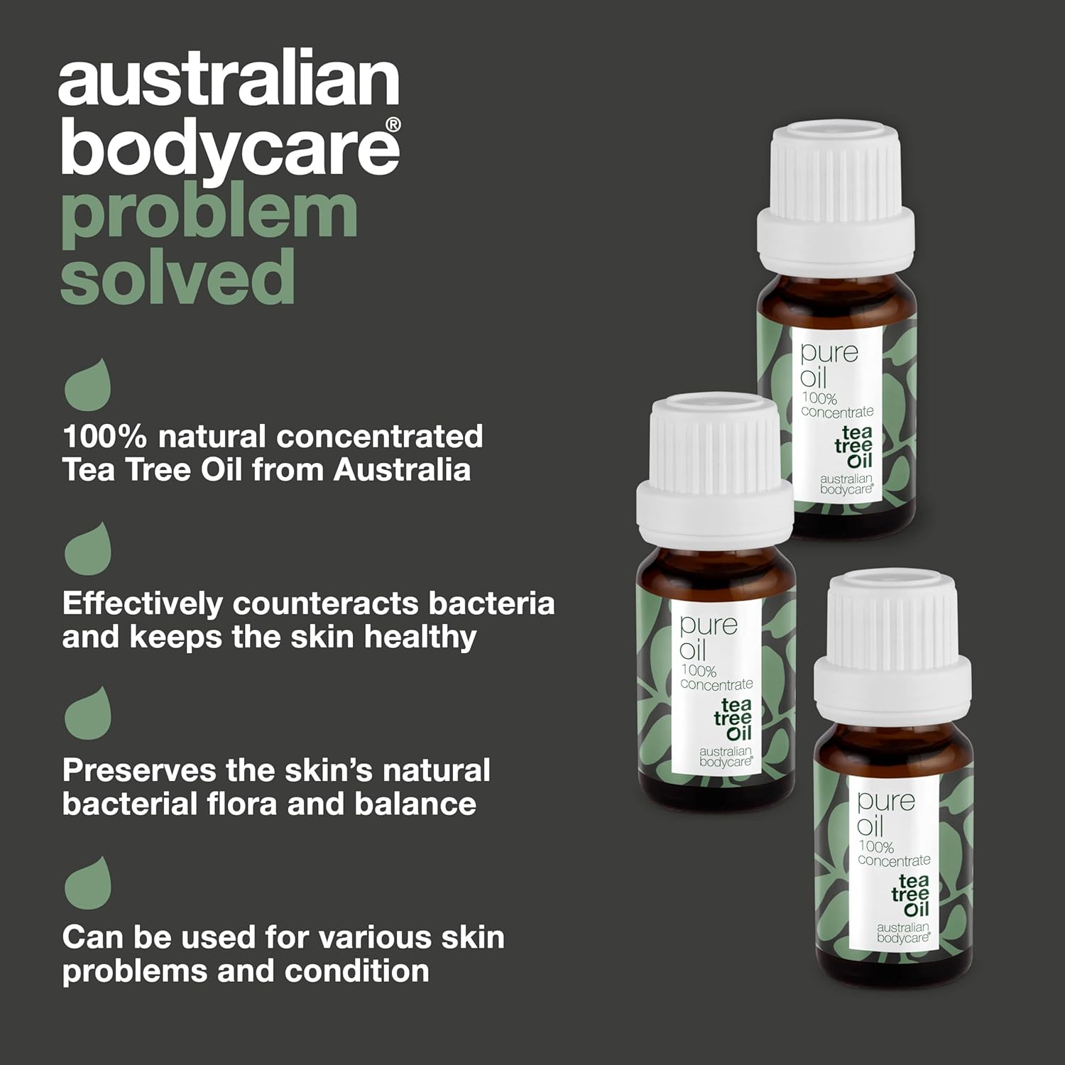 About this item ?? 100% Pure natural, skin-friendly, antibacterial, antiseptic and anti-fungal Tea Tree Oil from Australian Bodycare. ?? Can be used every day for cuts, grazes, cold sores, spots and pimples, athletes foot, muscular aches, insect bites, itchy scalp, skin irritations and much ore. ?? Known for centuries for its bacterial and caring properties, this pure 10ml concentrate of the Australian Tea Tree Oil can be used diluted or added to other skin care products to fight contamination and other skin problems. ?? This Melaleuca alternifolia variety of Tea Tree Oil has the most beneficial natural properties out of all 110 varieties. › See more product details,?? 100% Pure natural, skin-friendly, antibacterial, antiseptic and anti-fungal Tea Tree Oil from Australian Bodycare,?? Can be used every day for cuts, grazes, cold sores, spots and pimples, athletes foot, muscular aches, insect bites, itchy scalp, skin irritations and much ore,?? Known for centuries for its bacterial and caring properties, this pure 10ml concentrate of the Australian Tea Tree Oil can be used diluted or added to other skin care products to fight contamination and other skin problems,?? This Melaleuca alternifolia variety of Tea Tree Oil has the most beneficial natural properties out of all 110 varieties