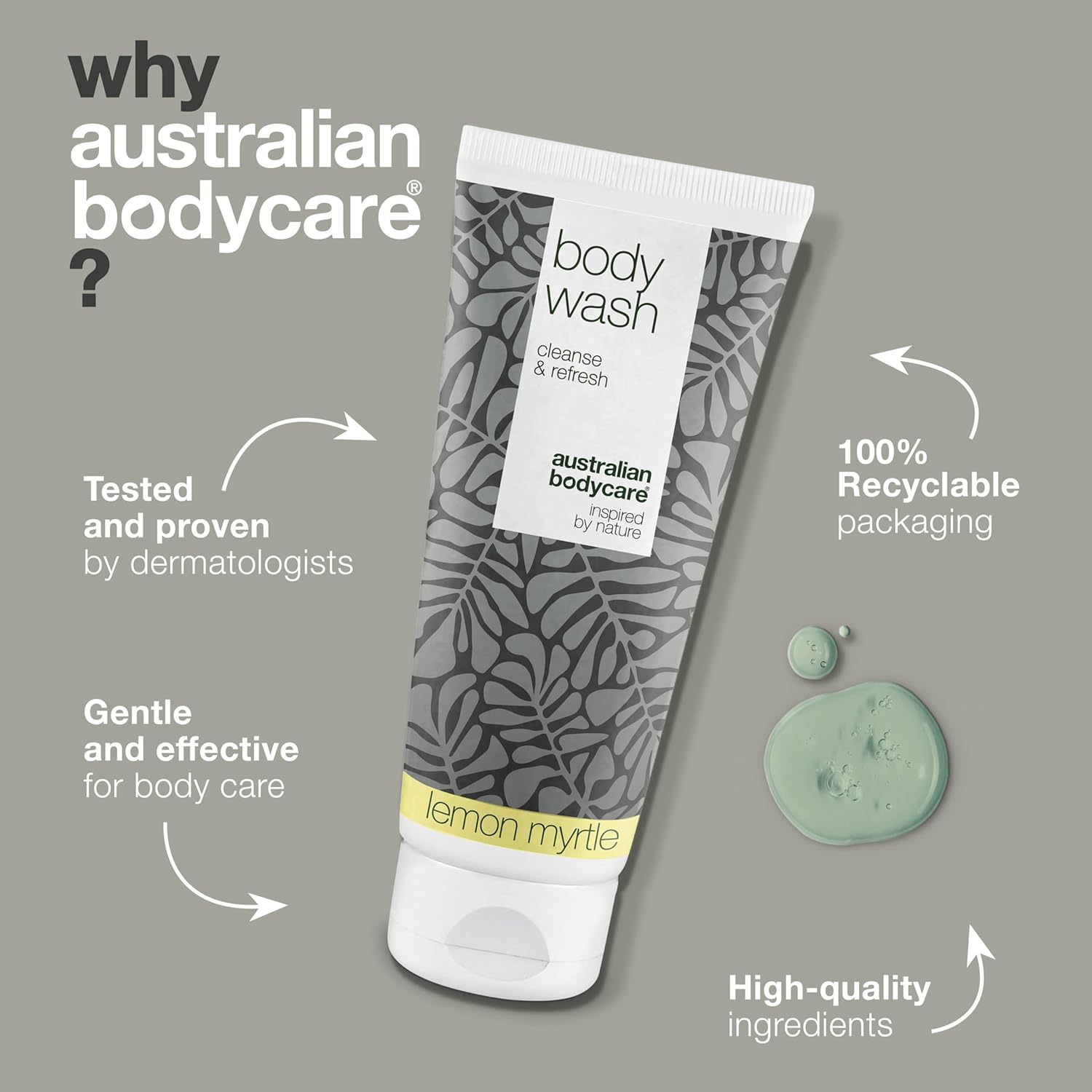 About this item ?? RESULTS: What can I expect and when You will feel the effect immediately as it mildly cleans your skin without causing dryness. It reduces skin problems and body odour. Although it’s important that you don't expect results overnight, it can take some time. If you haven’t seen any signs of improvement after 2 weeks, send us a mail and receive a FULL REFUND! No need to send the bottle back! ?? HOW TO USE: How often should I use the Body Wash You should use the body wash daily as required to reduce skin problems, body odour, remove excess oil from your skin and restore the skin’s natural protection. The Body Wash is for daily use for the whole body. For very dry skin, we recommend to use the body wash together with our Body Lotion that nourishes the skin and leaves it feeling smooth. ?? PRODUCT INFO: Body Wash is dermatologically tested and can be used as an everyday body wash. Contains 100% natural Australian Tea Tree Oil of pharmaceutical quality. Every single natural active ingredient was carefully selected for each body product. All products from Australian Bodycare are dermatologically tested and 100% vegan. ?? SUITABILITY: The product has been approved by our cosmetic science team. We have been developing problem-solving skin care products of superior quality for more than 30 years. We develop all our products using top?shelf ingredients. With regards to quality, we do not compromise. Our product is 100% vegan and contains 100% natural active ingredients. › See more product details,?? RESULTS: What can I expect and when You will feel the effect immediately as it mildly cleans your skin without causing dryness. It reduces skin problems and body odour. Although it’s important that you don't expect results overnight, it can take some time. If you haven’t seen any signs of improvement after 2 weeks, send us a mail and receive a FULL REFUND! No need to send the bottle back!,?? HOW TO USE: How often should I use the Body Wash You should use the body wash daily as required to reduce skin problems, body odour, remove excess oil from your skin and restore the skin’s natural protection. The Body Wash is for daily use for the whole body. For very dry skin, we recommend to use the body wash together with our Body Lotion that nourishes the skin and leaves it feeling smooth,?? PRODUCT INFO: Body Wash is dermatologically tested and can be used as an everyday body wash. Contains 100% natural Australian Tea Tree Oil of pharmaceutical quality. Every single natural active ingredient was carefully selected for each body product. All products from Australian Bodycare are dermatologically tested and 100% vegan,?? SUITABILITY: The product has been approved by our cosmetic science team. We have been developing problem-solving skin care products of superior quality for more than 30 years. We develop all our products using top?shelf ingredients. With regards to quality, we do not compromise. Our product is 100% vegan and contains 100% natural active ingredients