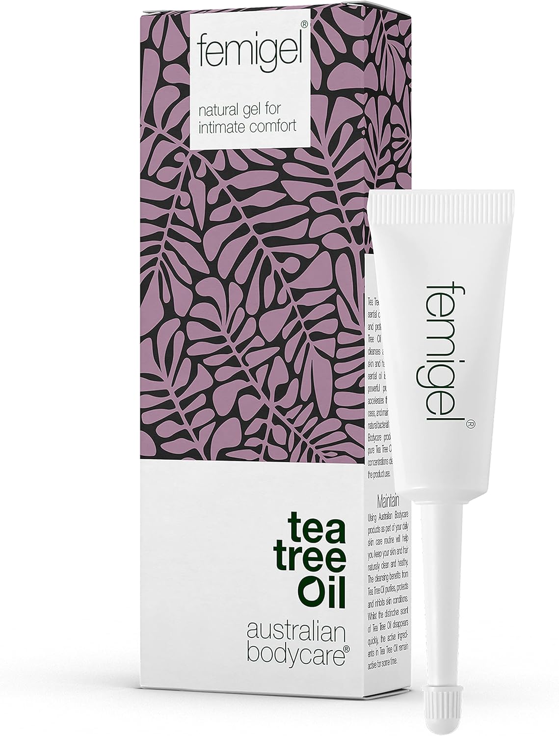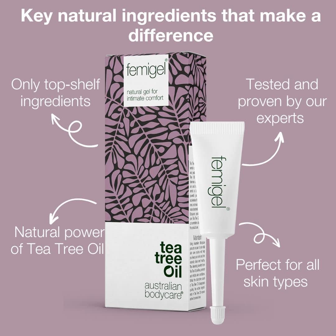 PRODUCT INFO: Contains 100% natural australian Tea Tree Oil of pharmaceutical quality. The unique composition of natural ingredients keep your intimate parts healthy and comfortable. Femigel is gynecologically tested. All products from Australian Bodycare are dermatologically tested and 100% vegan. 100 % says that femigel reduce itching. 94 % says that femigel reduce dryness. 94 % says that femigel reduce irritation. 88 % says that femigel reduce unwanted odour