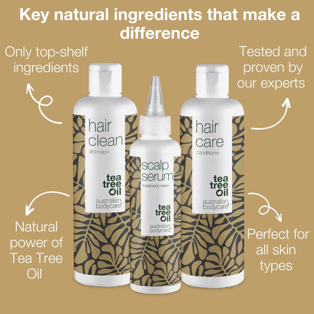 Australian Bodycare Scalp Treatment Set of 3 | Tea Tree Oil Scalp treatments for Dry Itchy Flaky Scalp & and Spots on scalp | Inside: Scalp Serum 5.07OZ + Shampoo 8.4OZ + Conditioner 8.4OZ